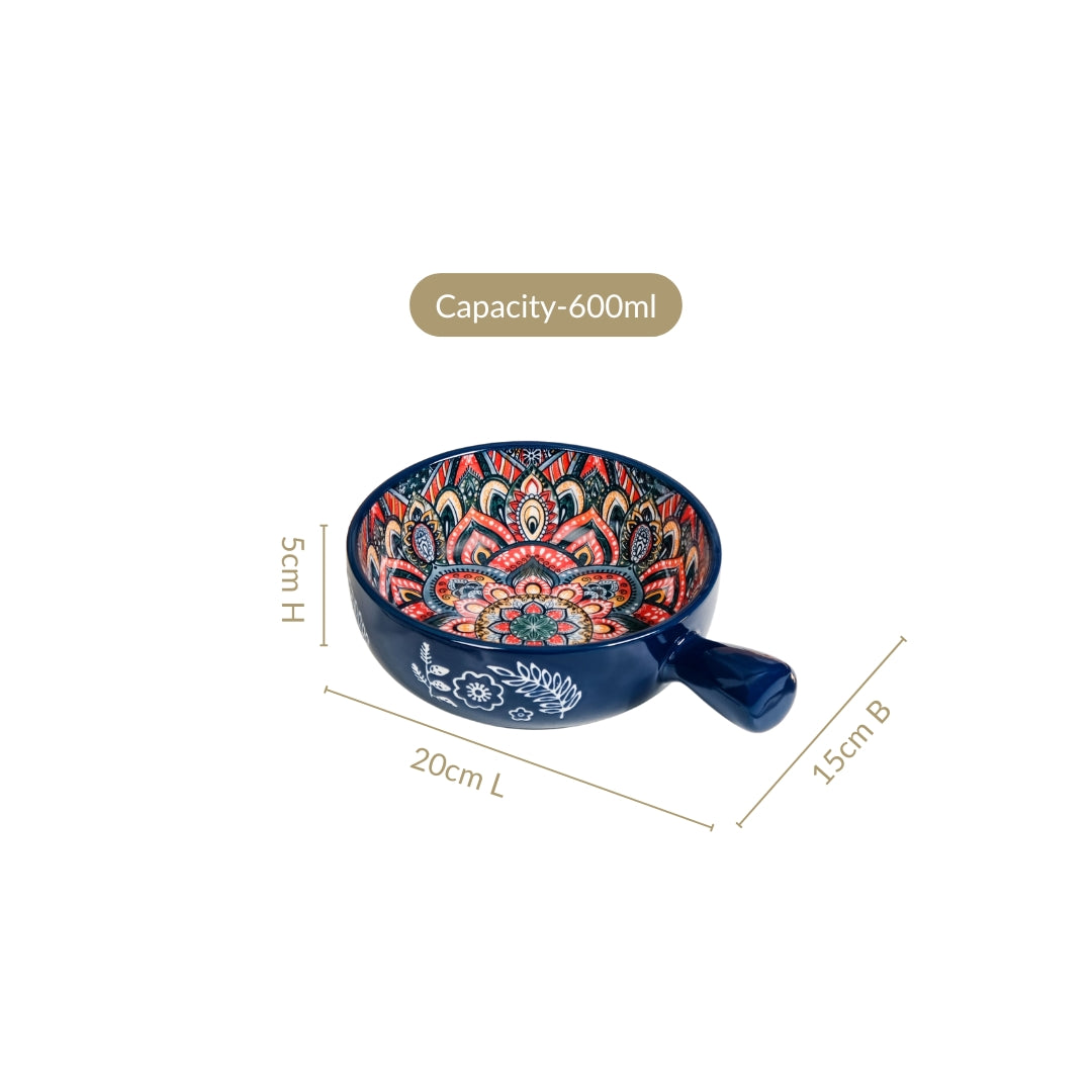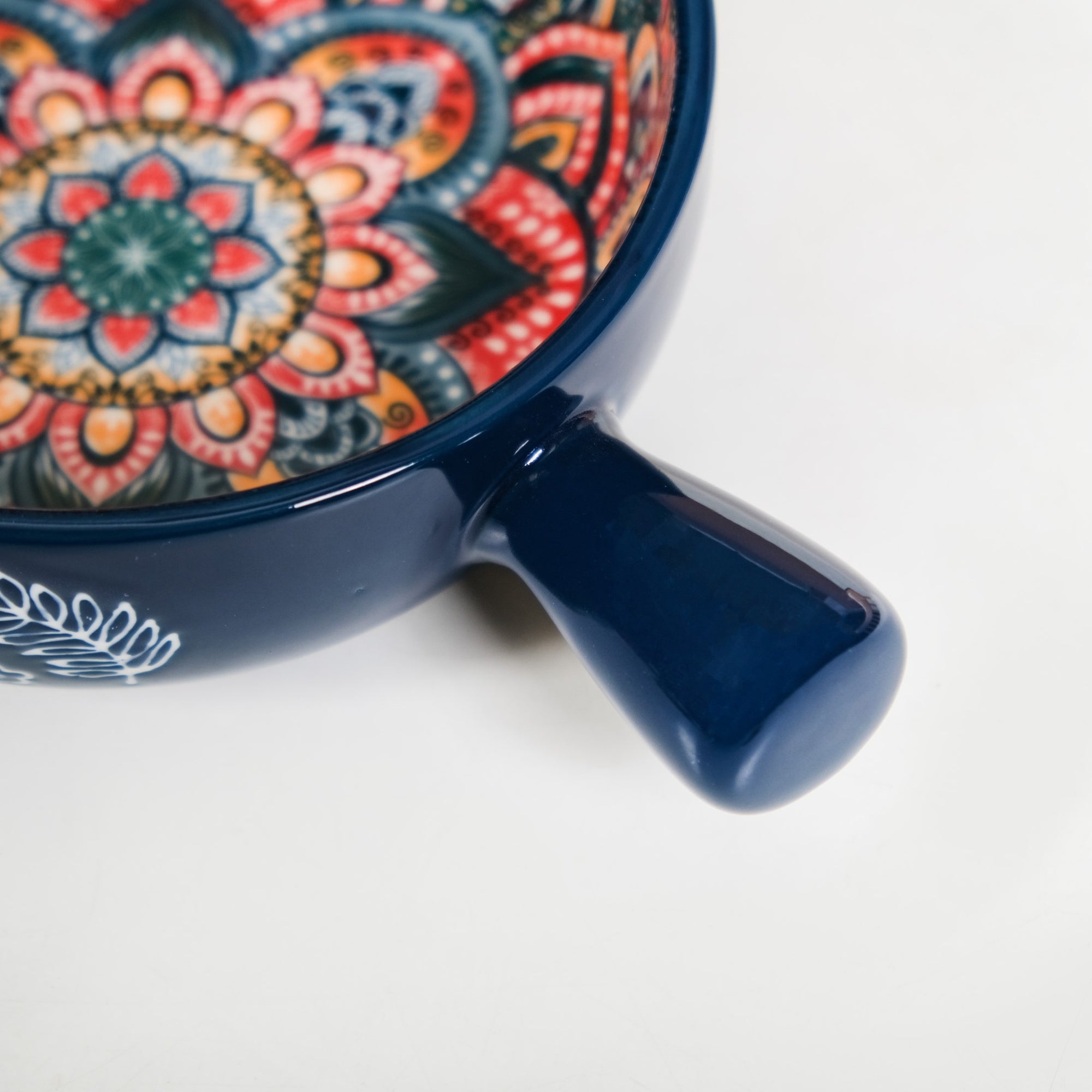 Mandala Melange Dish Bowl With Handle Blue 600ml