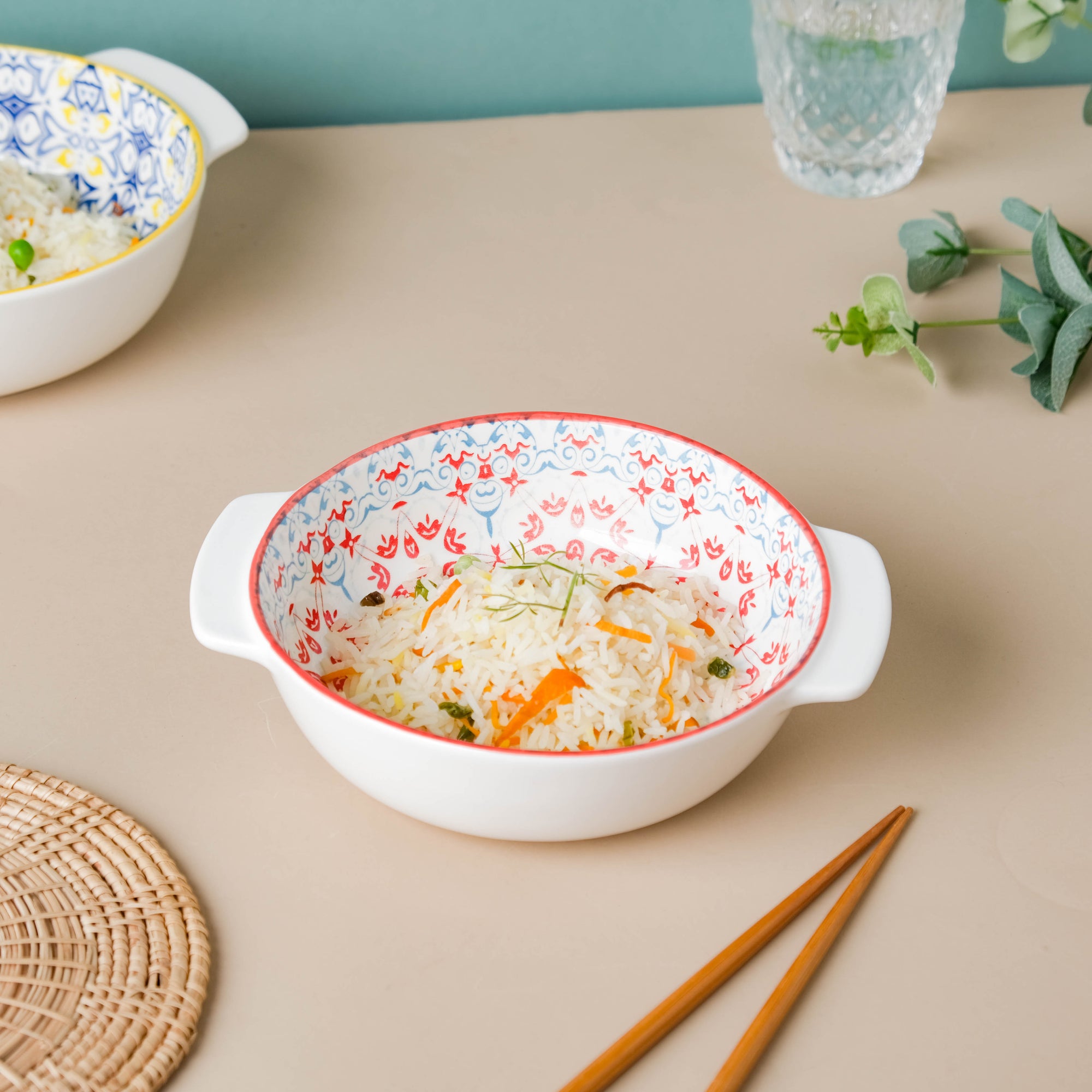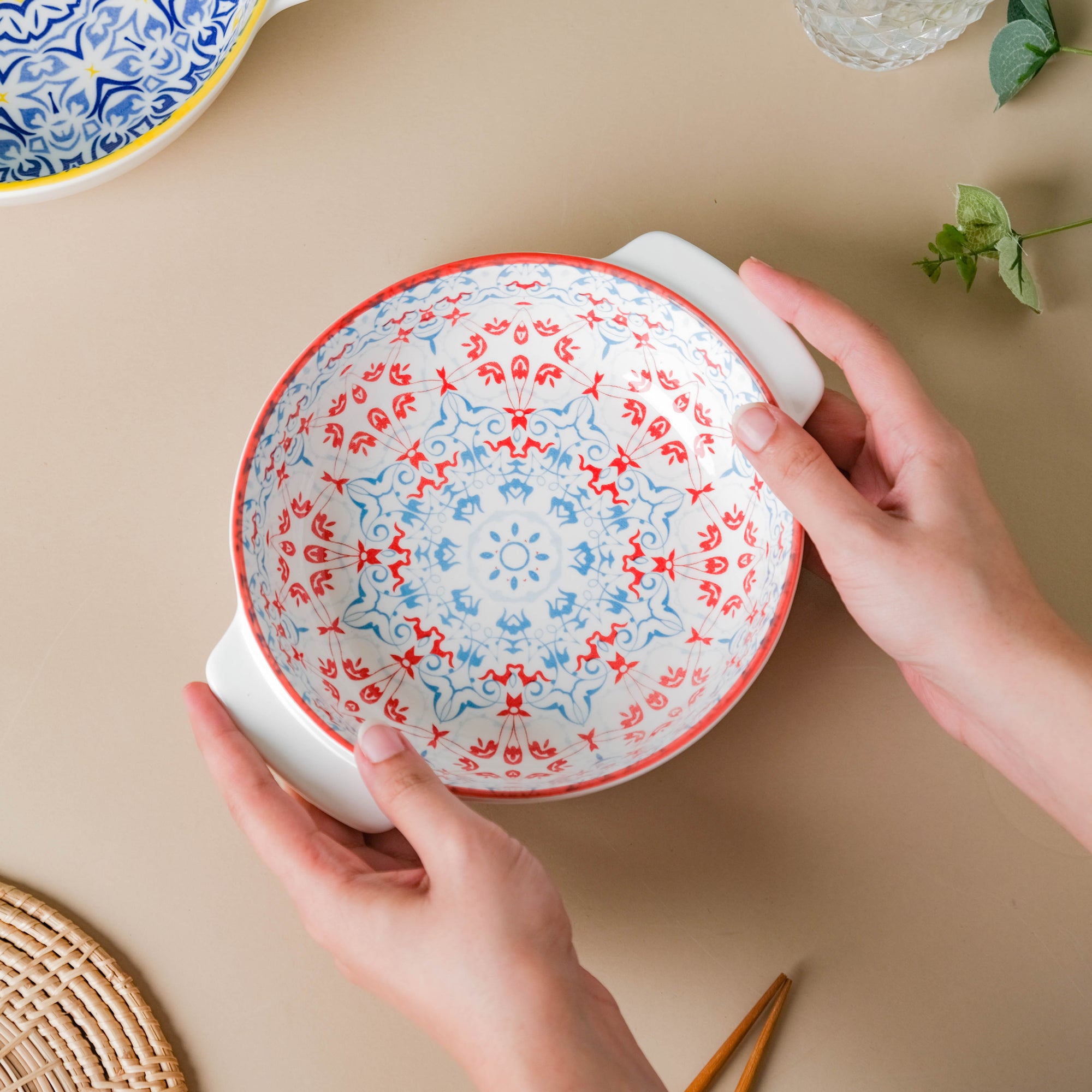 Mita Mandala Red Floral Baking Dish With Handle 8.5 inch