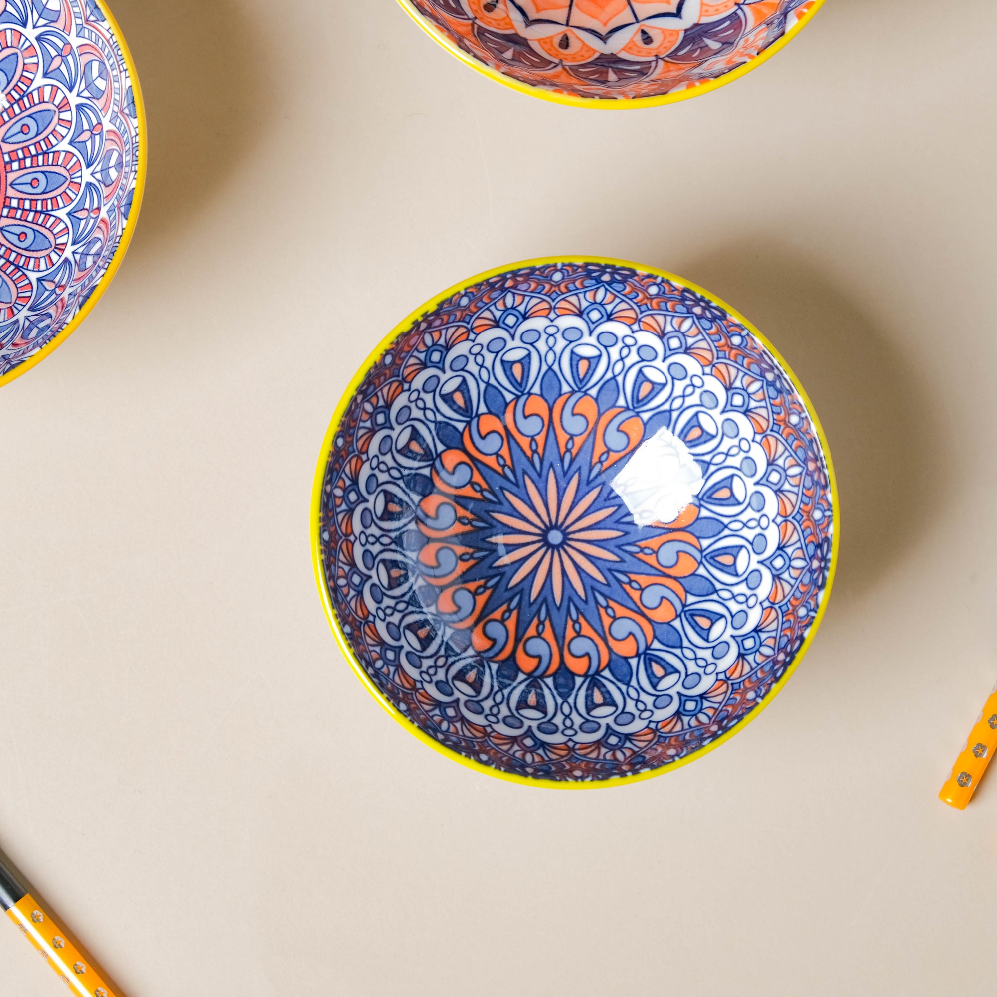 Our Mandala bowl collection showcases the perfect blend of fancy table decor and superb functionality. These snack bowls are adorned with exquisite traditional mandala designs that'll leave you mesmerised. The colourful and vibrant mandala patterns also make the snack bowls an attractive centrepiece in any table decor. Plus, the exterior designs add to the aesthetic appeal of these ceramic snack bowls. Our range of Mandala snack bowls can also be an exceptional housewarming or anniversary gift for your close ones.