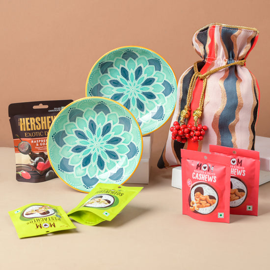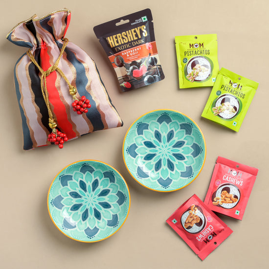 The mandala snack dishes are versatile and can be used to serve a wide range of snacks. Whether you're serving dry snacks like nuts, chips, or cookies, or saucy snacks like dips or sauces, these dishes are designed to accommodate both types of snacks.