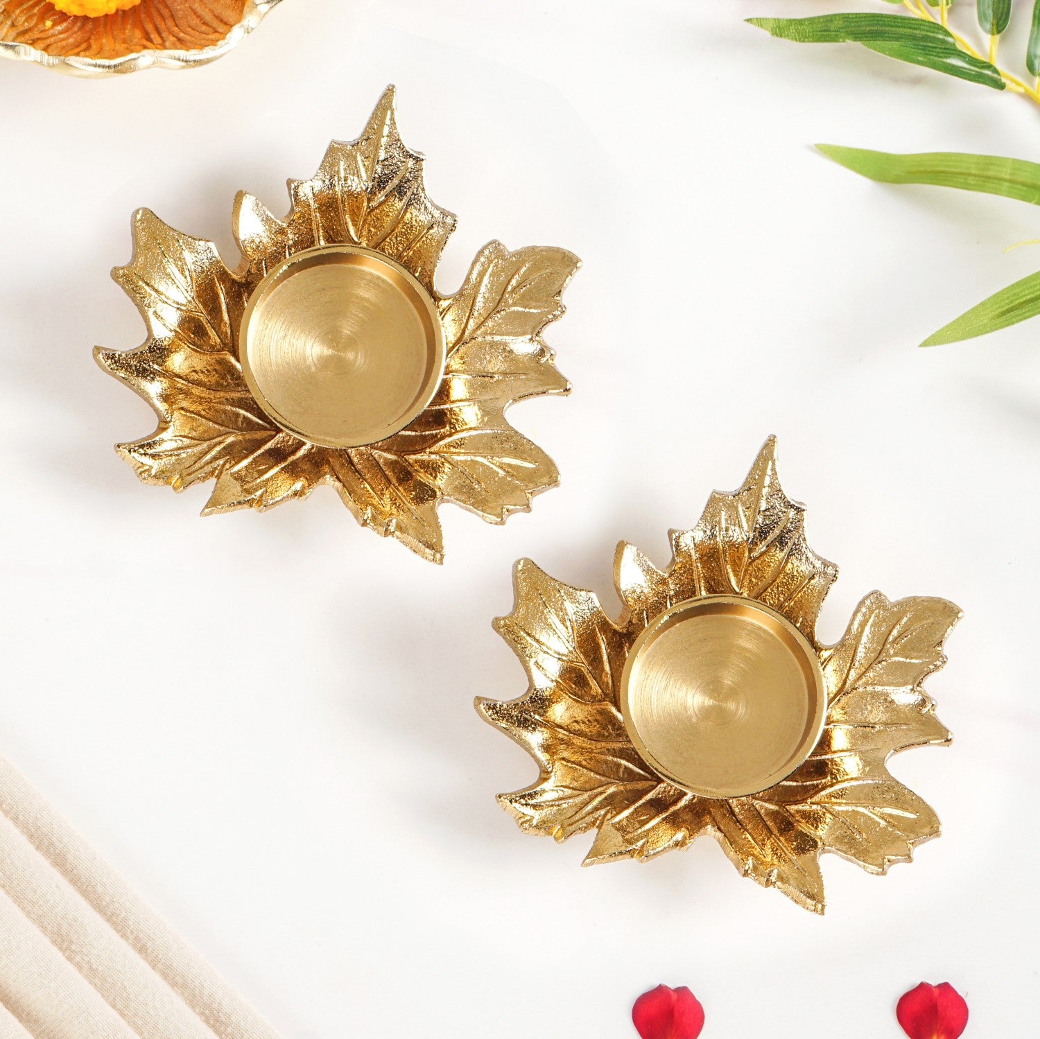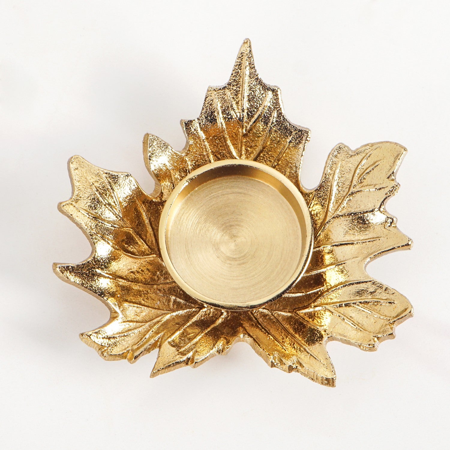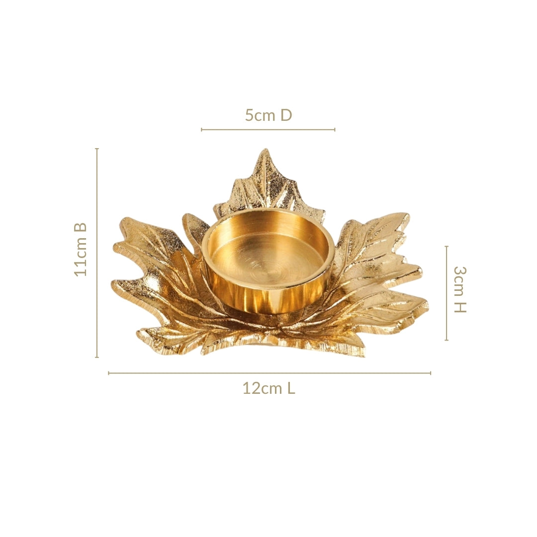 Design: Each tealight holder is expertly crafted from durable, lightweight aluminium with a captivating, lustrous gold finish. The intricate maple leaf design features a finely textured surface that mimics the natural veins of a leaf, adding depth and realistic detail. A perfectly sized well sits at the centre, ready to hold your favourite tealight candle.
