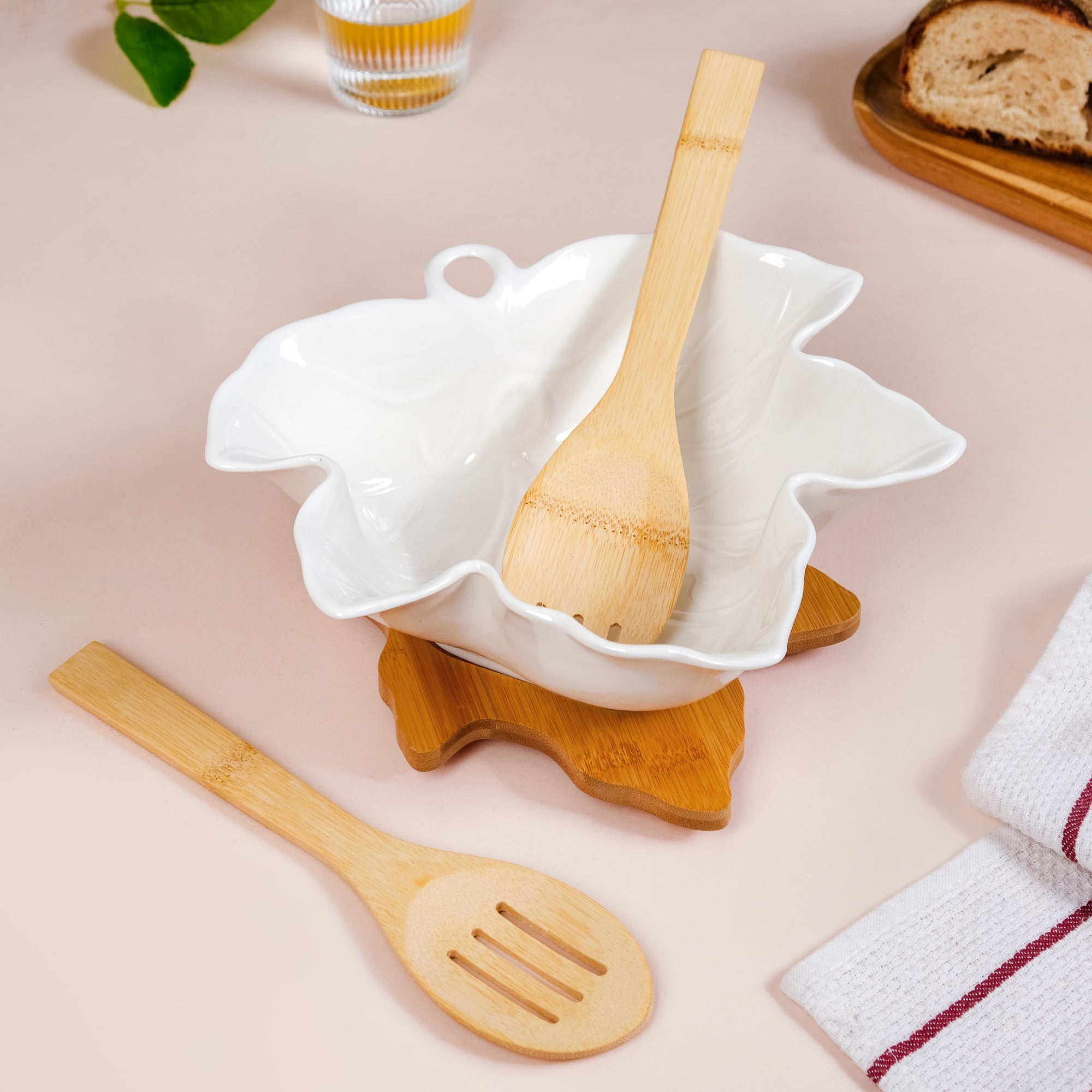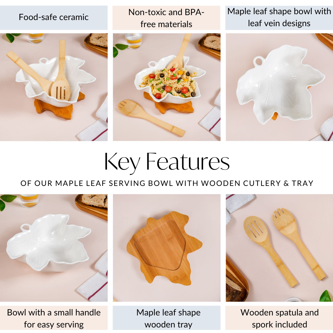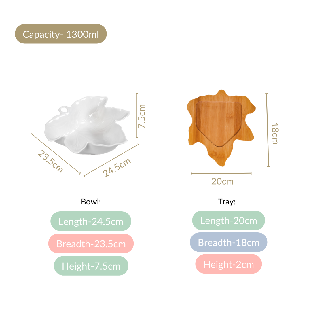 Maple Leaf Serving Bowl With Wooden Cutlery And Tray 1300ml