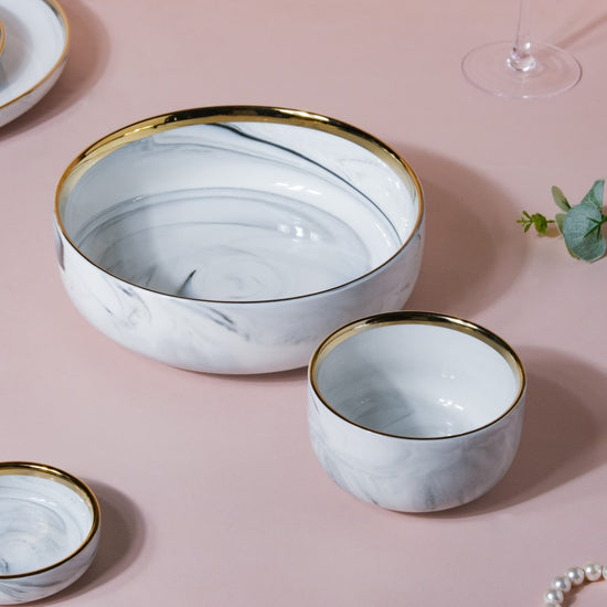 Our collection of marble bowls has a smooth and polished marble finish, exuding elegance and sophistication, perfect for setting a luxe table decor to impress the house guests. The marble bowls can be used as side bowls to serve soups and even desserts to your guests. You can pair the marble side bowls with marble serving bowls and marble dinner plates from the collection to maintain uniformity while setting up your table decor.