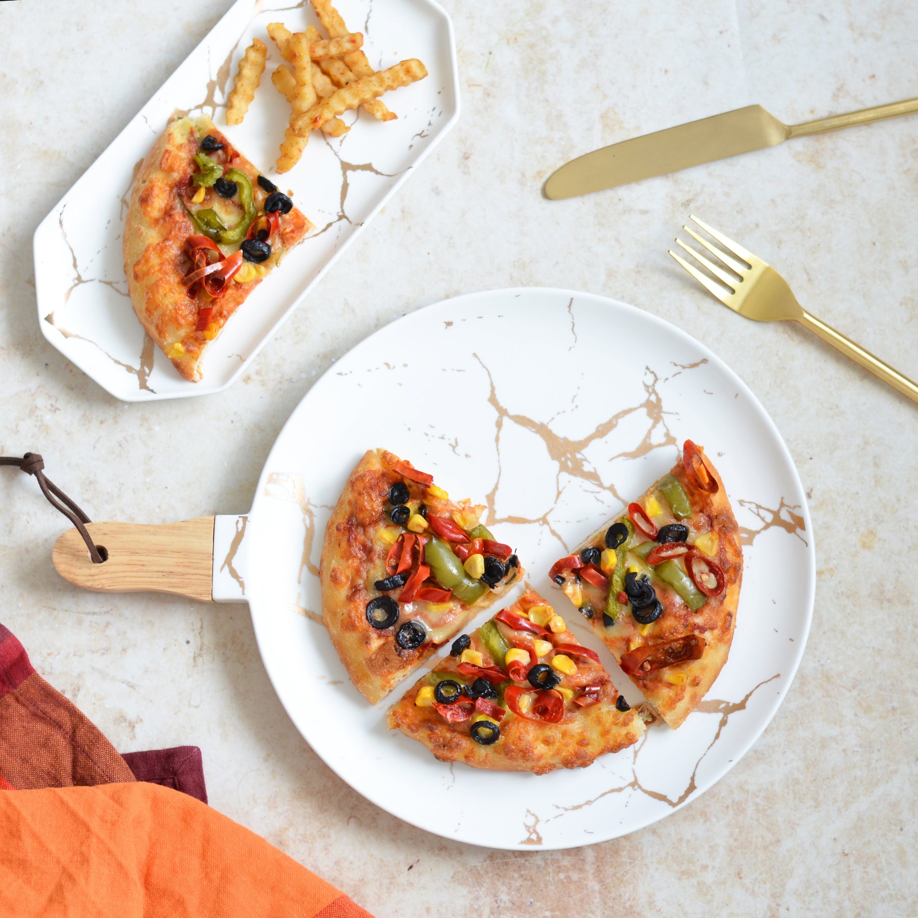 White Marble Gold Detailed Platter With Handle