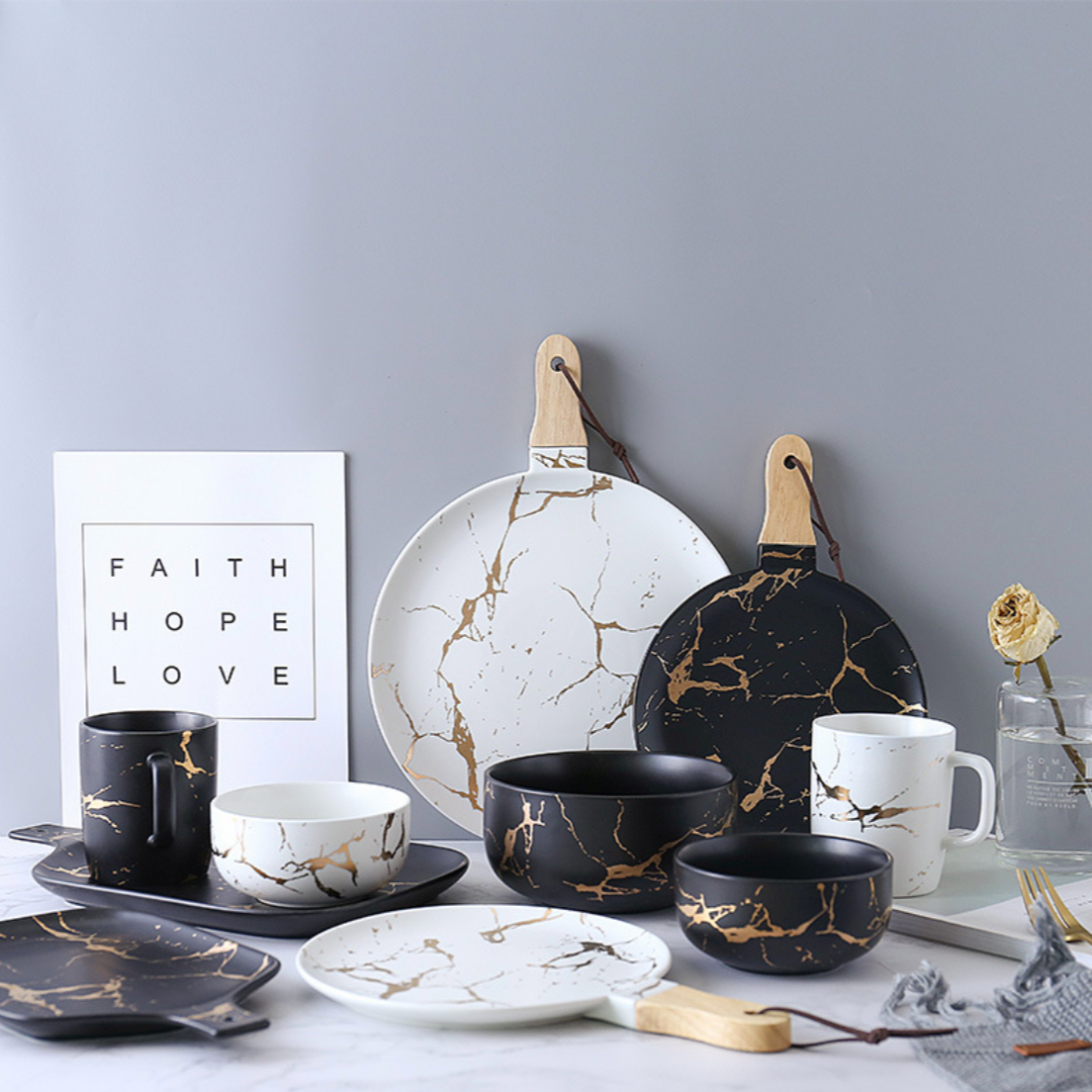 Nestip: Pair it with the black marble plates and bowls to complete the look