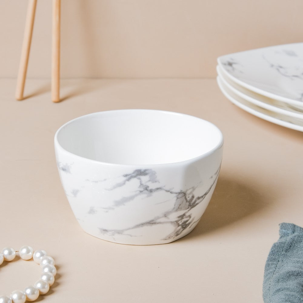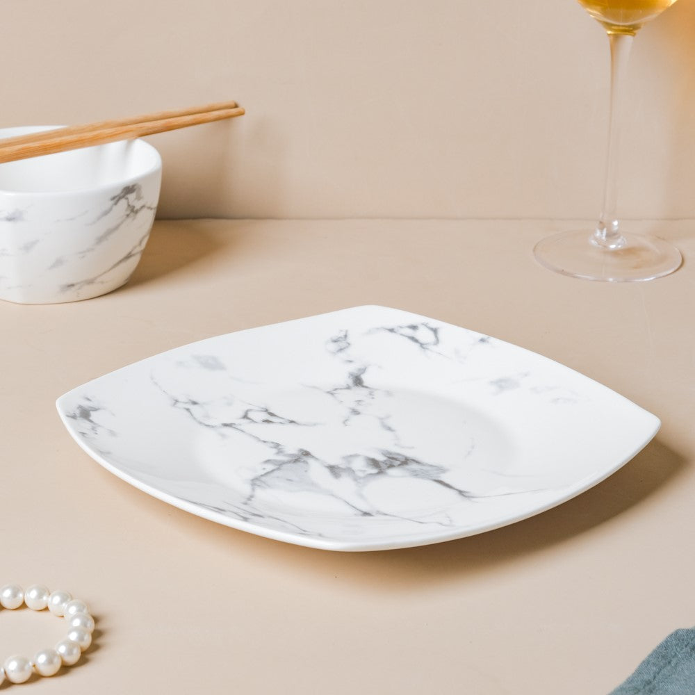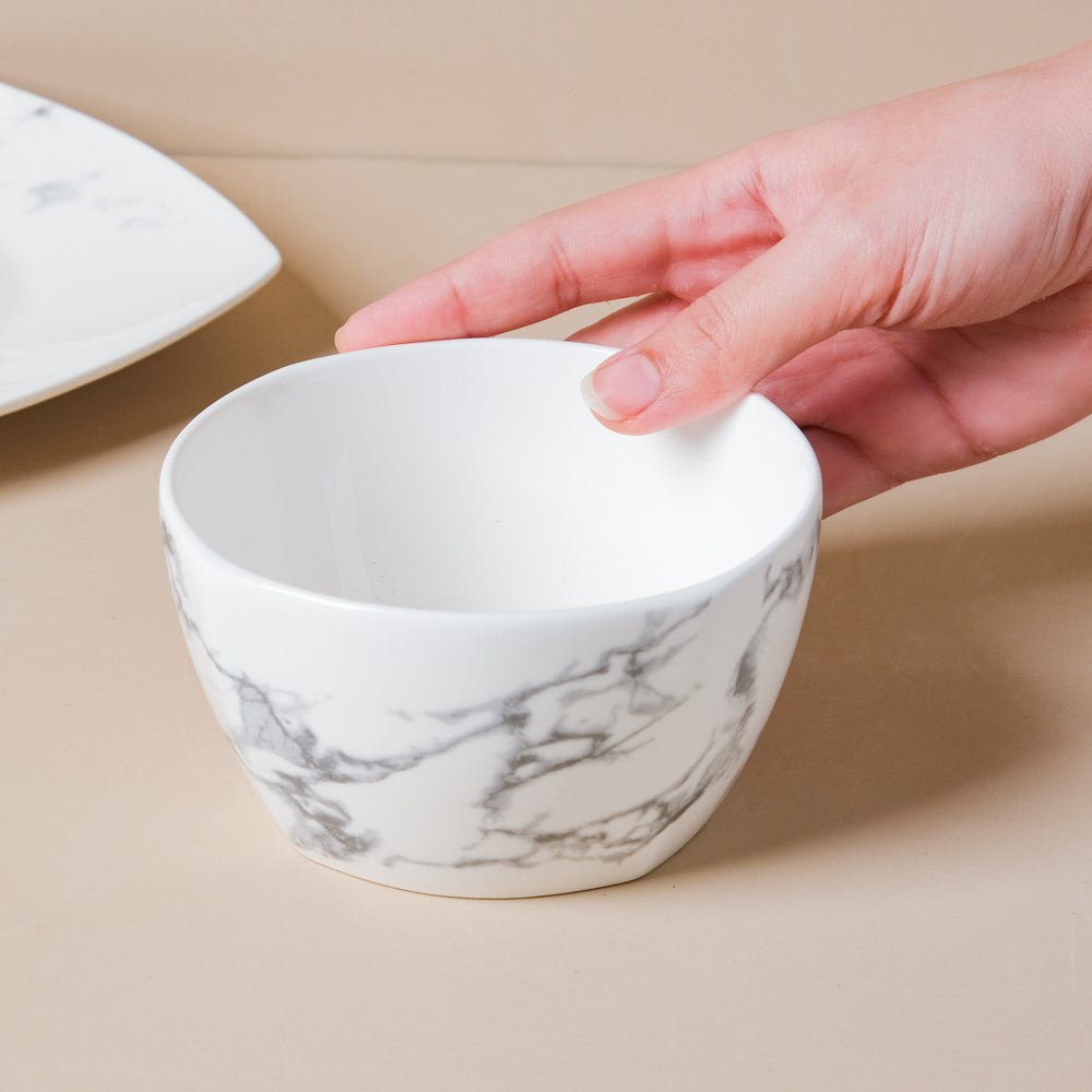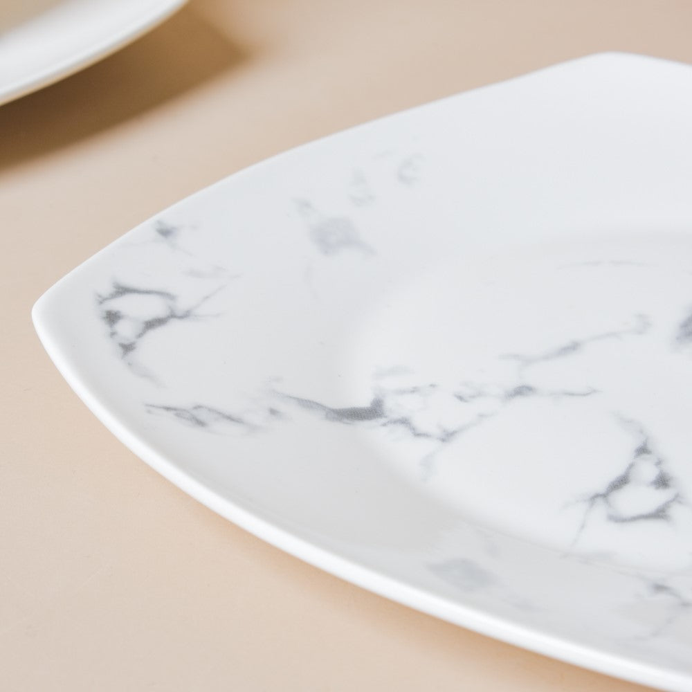The marble dinner/snack set of 16 that is made of ceramic and comes with 4 plates, 4 soup bowls, 4 soup spoons, and 4 sets of chopsticks adds an elegant air to any dinner setting. Host guests at home or use the pasta snack set for regular use at home. Serve full meals in the ceramic dinner set at supper time. The pasta snack set is apt to use on both formal and informal occasions.
