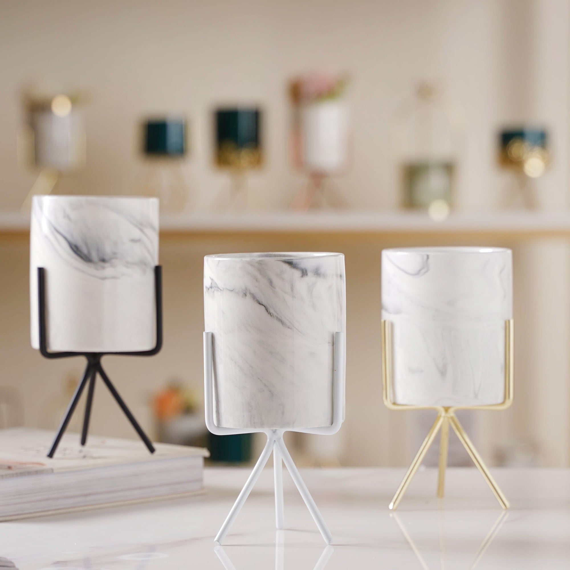 Nestip: Pair with succulents of your choice as a centerpiece. Size: Gold: With stand- 16cm HPot- 10cm H x 8cm D