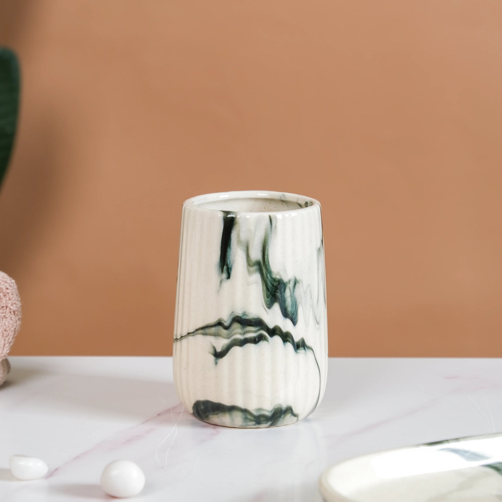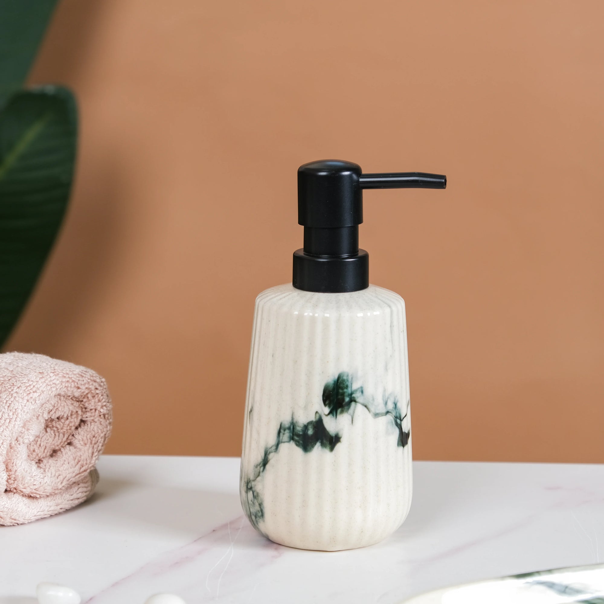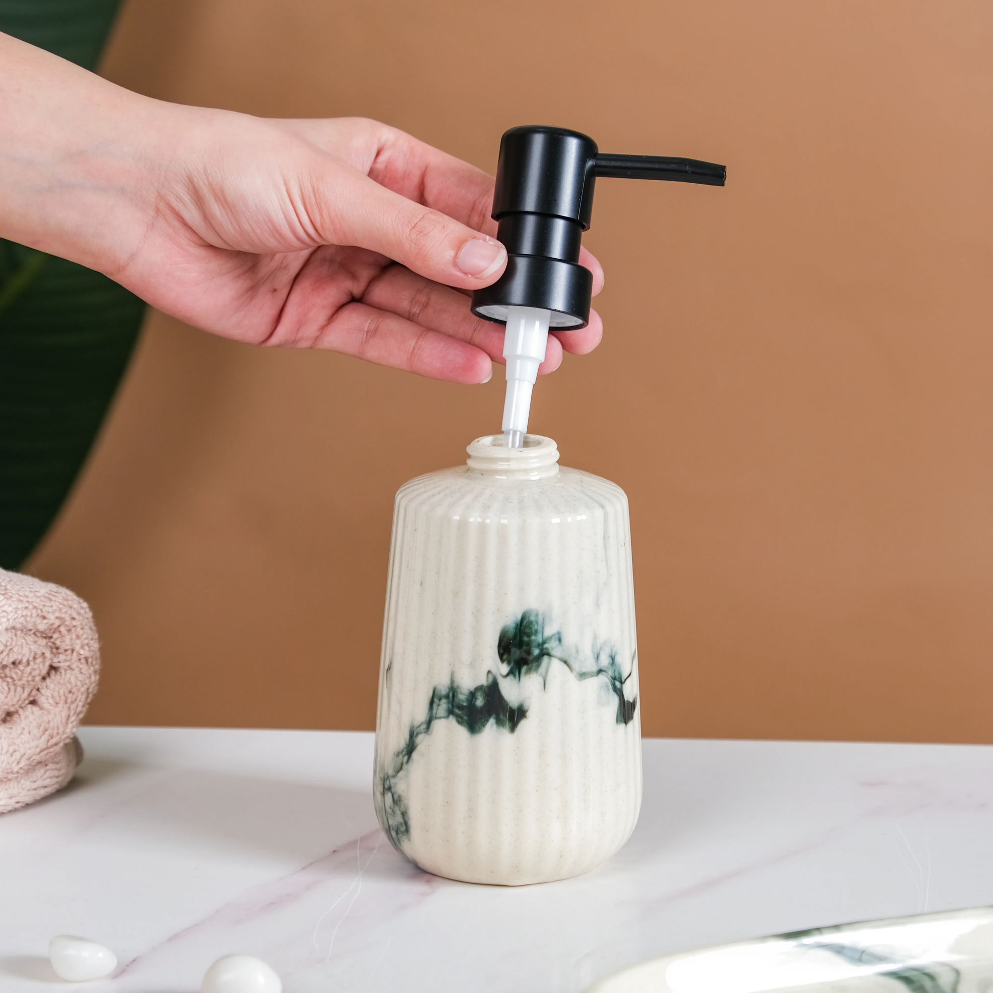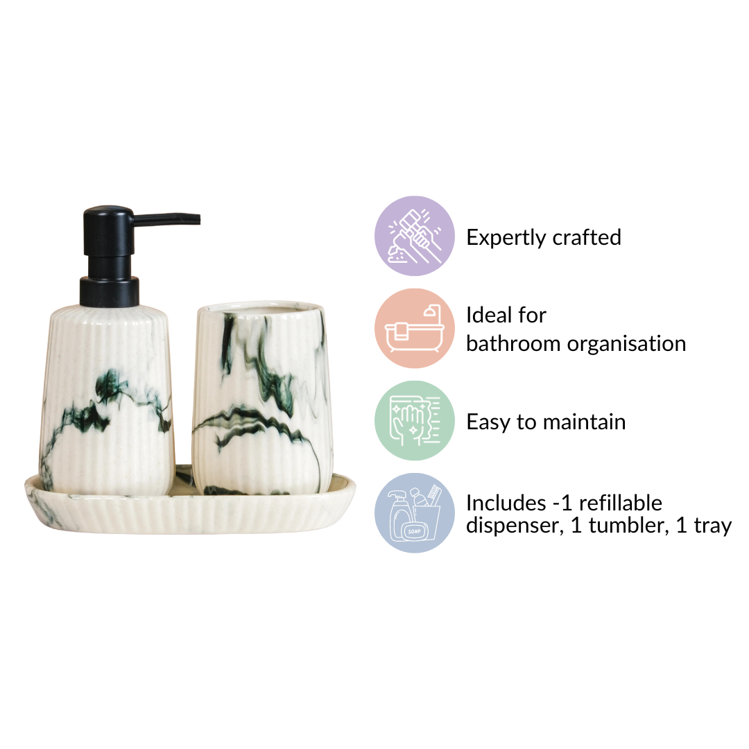 The ceramic tray included in the set helps you keep your bathroom essentials organized and within easy reach. It adds an elegant touch while simplifying your daily routine. Meanwhile, you can use the ceramic tumbler to keep your toothbrushes and other such essentials that you need in your morning routine. The ceramic dispenser with an easy pump makes hand washing more hygienic, eco-friendly and effortless.