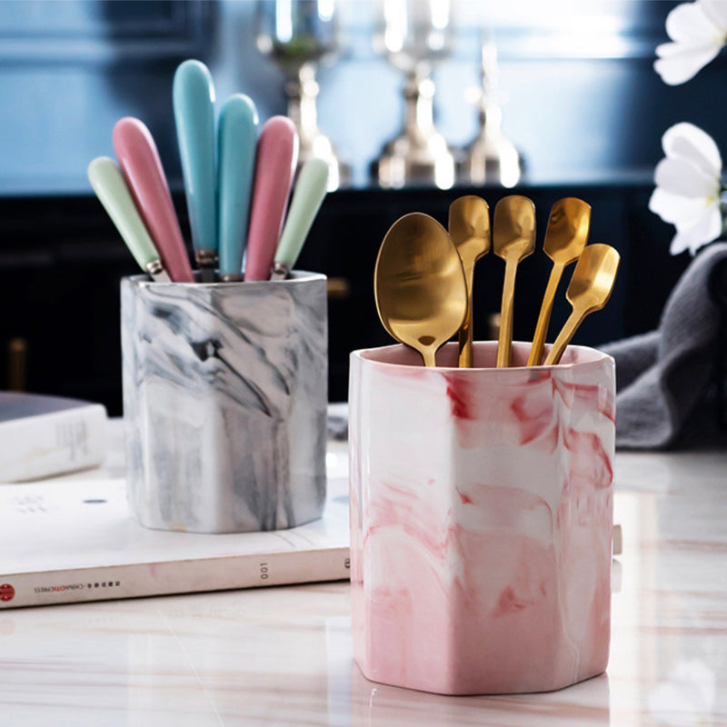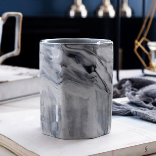 Tumbler made in ceramic that has a marble finish and comes in 2 colour variants. The ceramic tumbler can be used to serve beverages like tea, coffee, milk or can be doubled up as a pen stand or a cutlery stand. The multiutility marble glasses look elite and can elevate any table setting. The tumblers can be paired with the marble collection or can also be gifted to friends and family on occasions.