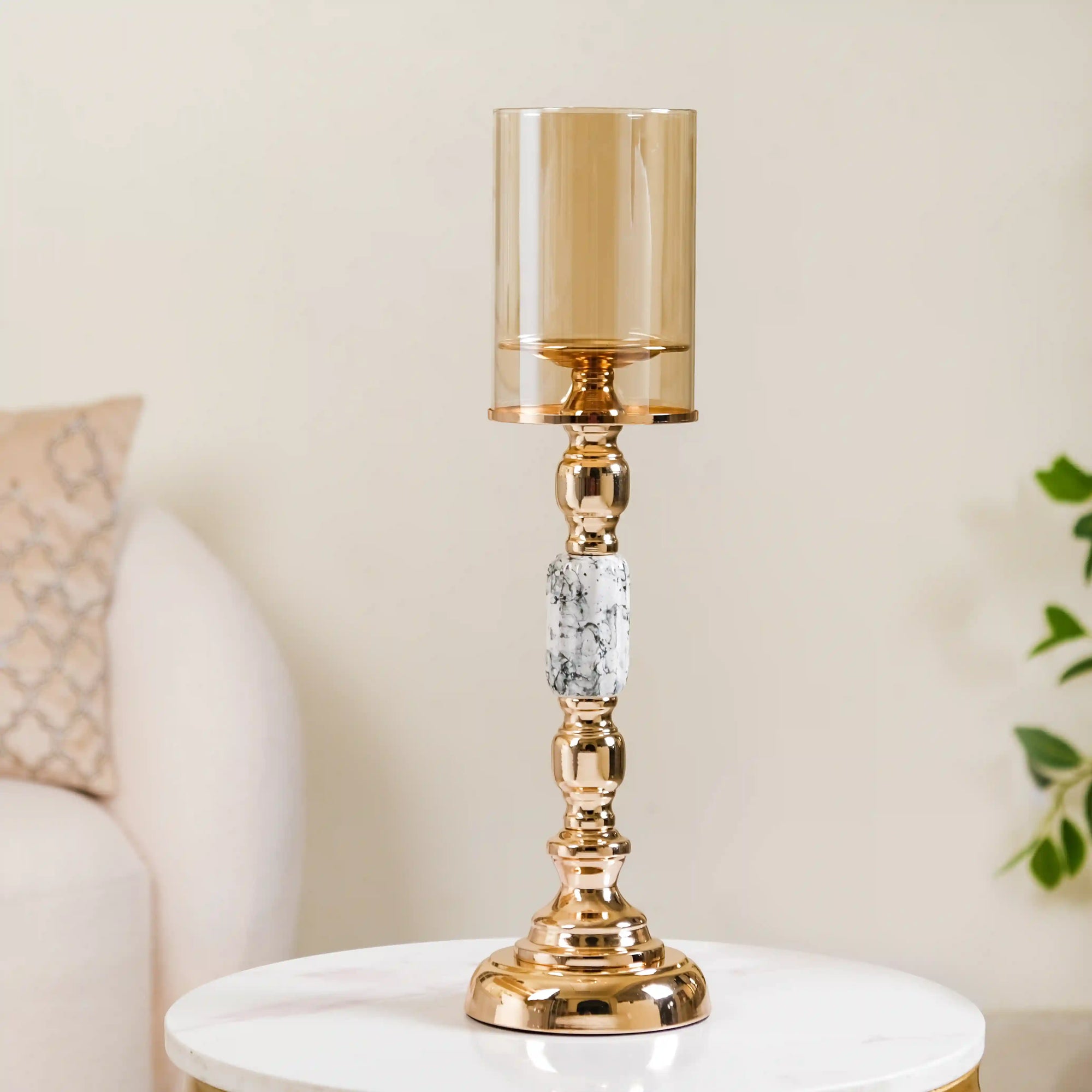 Hurricane-style candle holders are typically glass containers that surround the candle to protect it from drafts. They provide added safety and are often used outdoors or during events. These candle holders are very sophisticated and add a touch of elegance to the overall decor of the space. The sleek and sturdy glass cover of the candle stand adds protection along with adding a touch of charm to the overall ambiance when the candle is lit inside it.