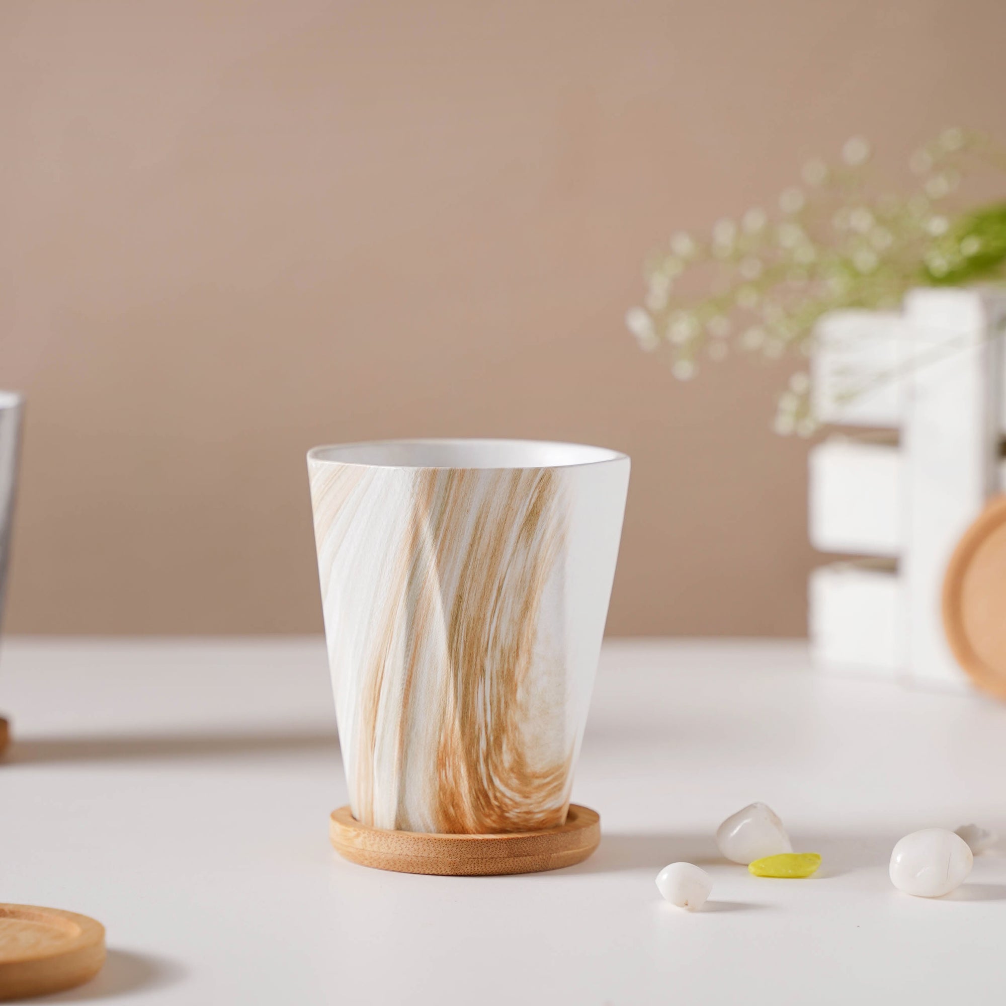 The indoor planter set includes 6 ceramic planters with different designs and patterns. The planter pots feature a stunning marble finish, which makes them look like they are carved out of stone. Each planter comes with a wooden coaster to prevent any excess water spillage from the outlet of the planters. You can keep the planters on your windowsill to add a fresh green touch to any room decor for a sustainable and eco-friendly interior design. You can also experiment with different floral arrangements using the planter set to bring home the natural beauty of fresh flowers. Use these planters to brighten up your home with your favourite flowers and indoor plants.