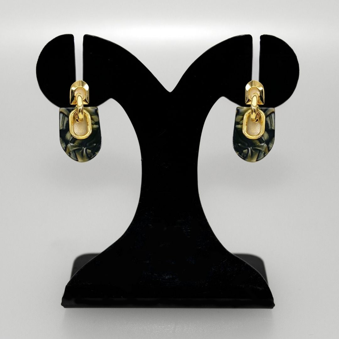 A statement of bold expression and contemporary style, these dangle earrings know how to make heads turn. Inspired by the complex beauty of marble's natural patterns, these earrings capture its timeless elegance. The gold tones add that irresistible allure of grandeur, while the marbled motifs offer a more naturalistic charm that evokes earthy sophistication. A perfect fusion of luxury and nature, these earrings effortlessly elevate any ensemble.