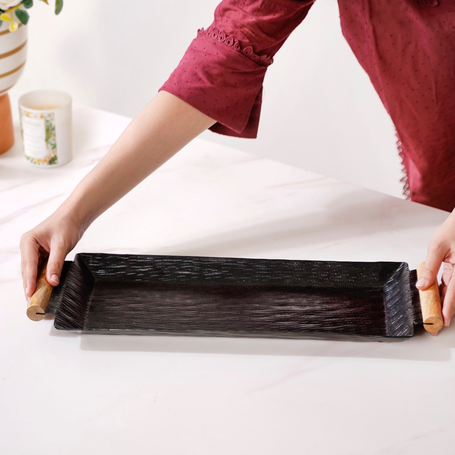 The matte black finish of the metal tray is resistant to scratches, ensuring a sleek appearance even with regular use.