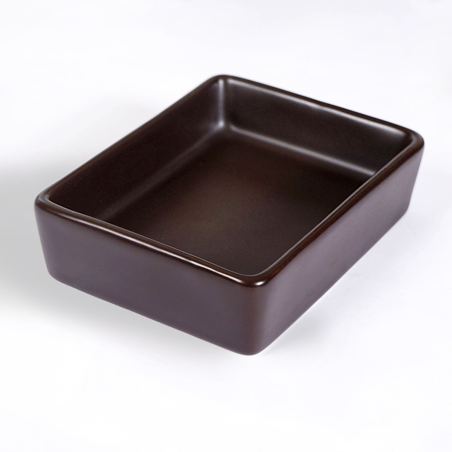 Design: Each dessert plate features a sophisticated rectangular shape with subtly elevated sides, providing a unique blend of modern design and classic elegance. The matte brown finish gives these dessert dishes a warm, earthy feel, perfect for creating an inviting dining atmosphere.