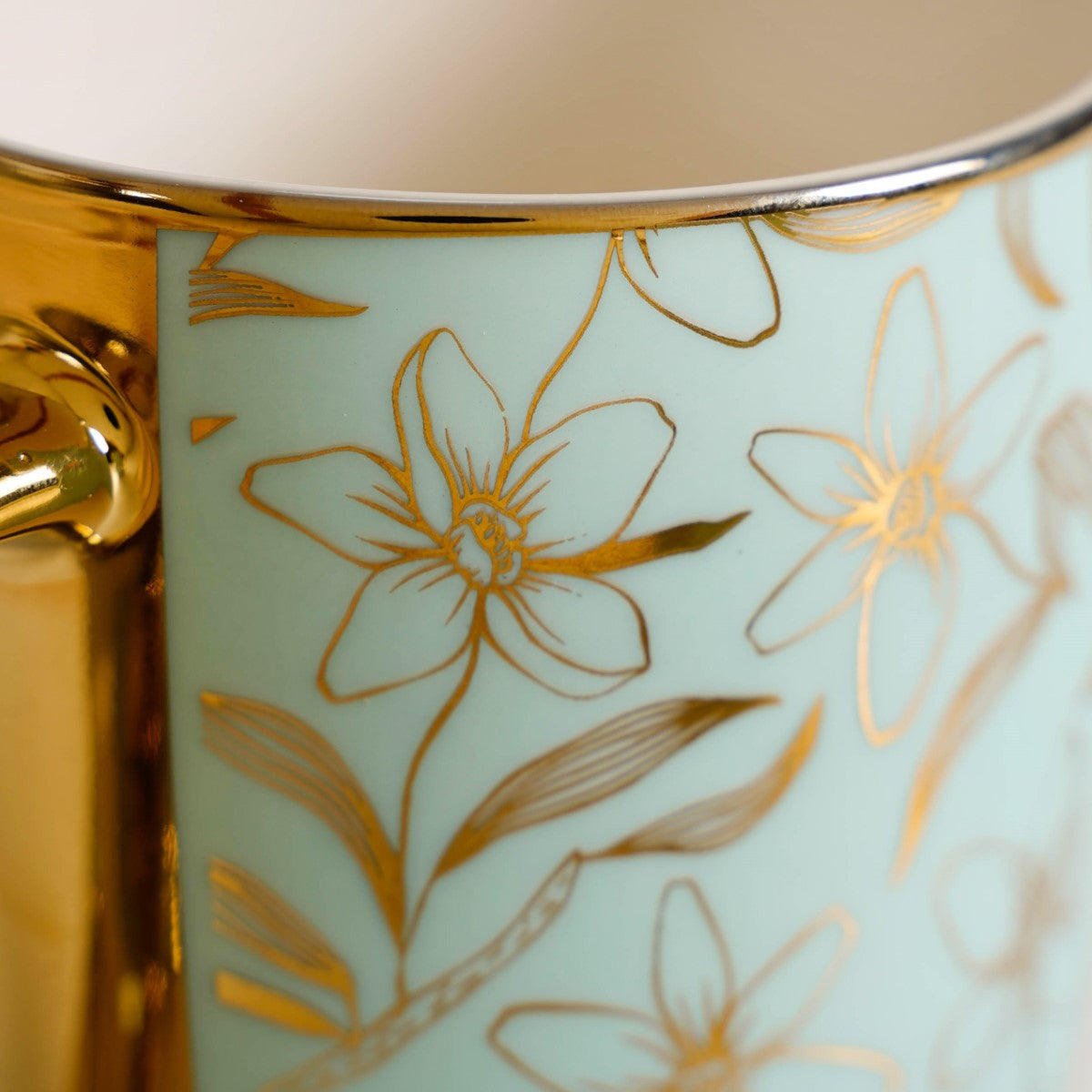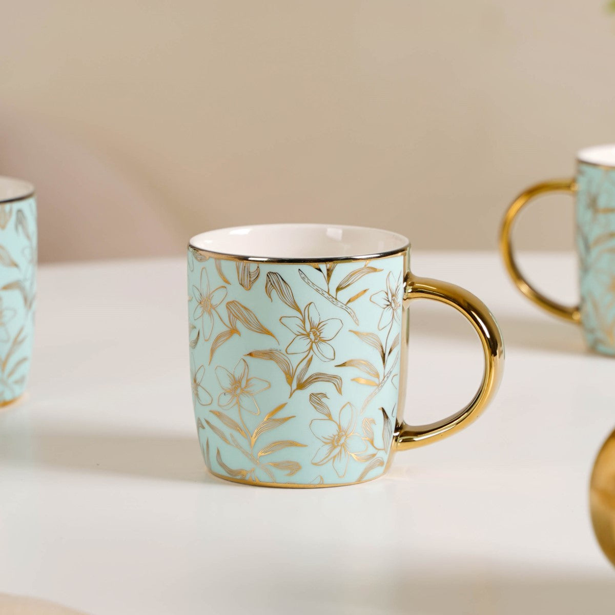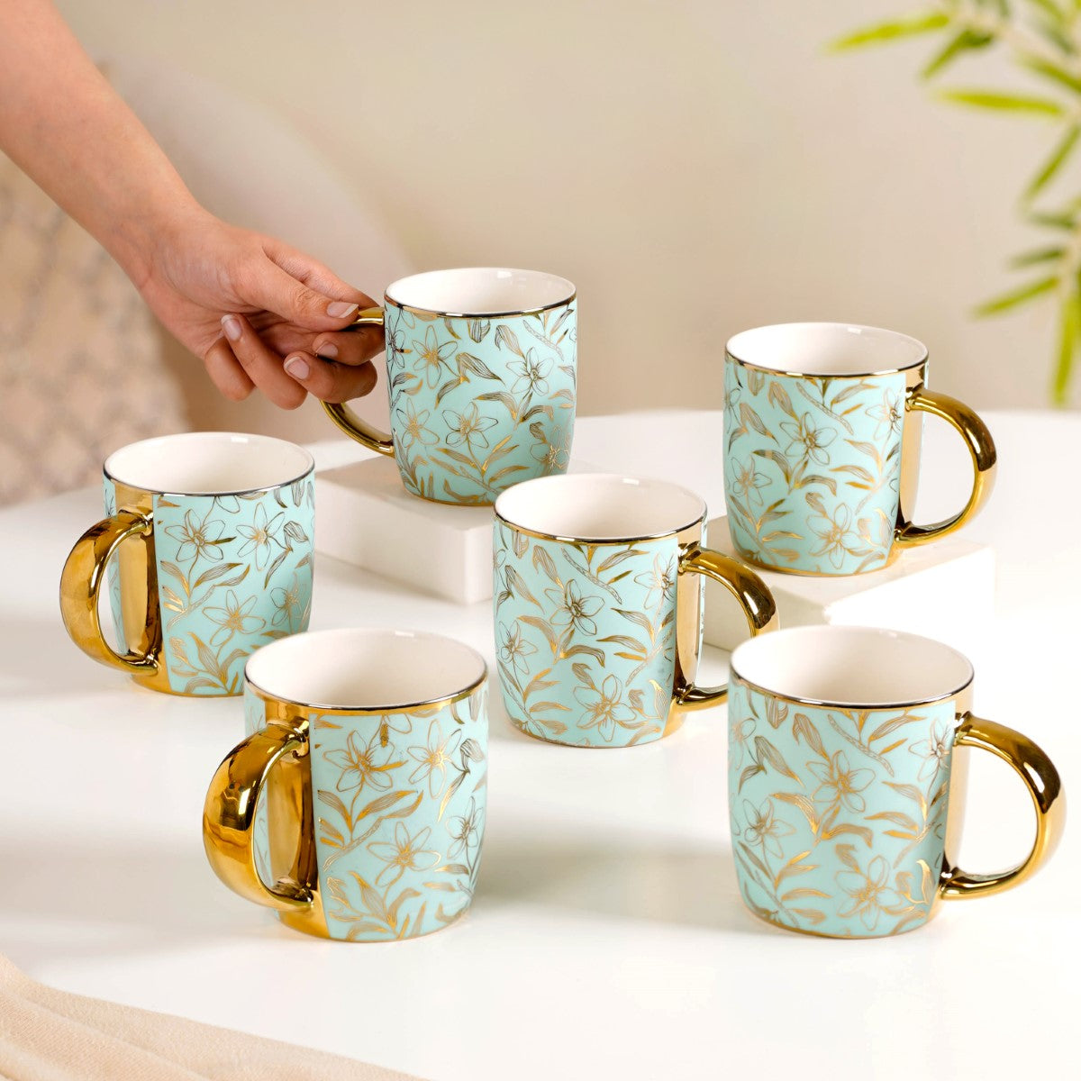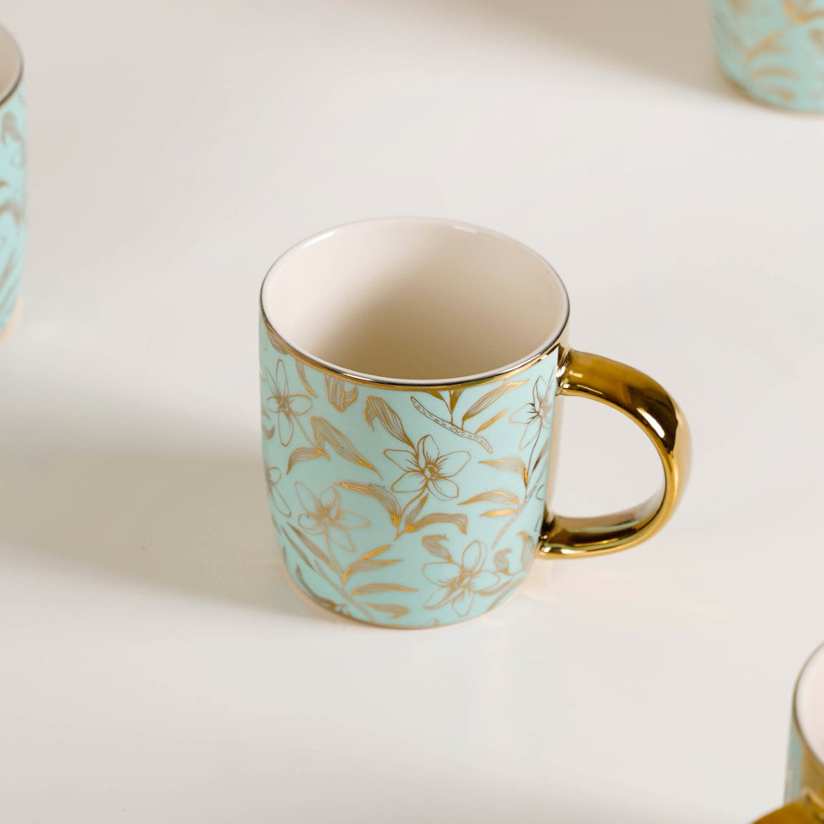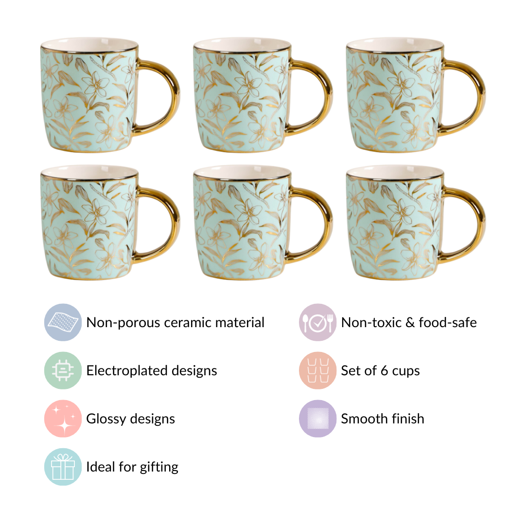 Matte Mint Gold Floral Coffee Cup Set of 6 350ml