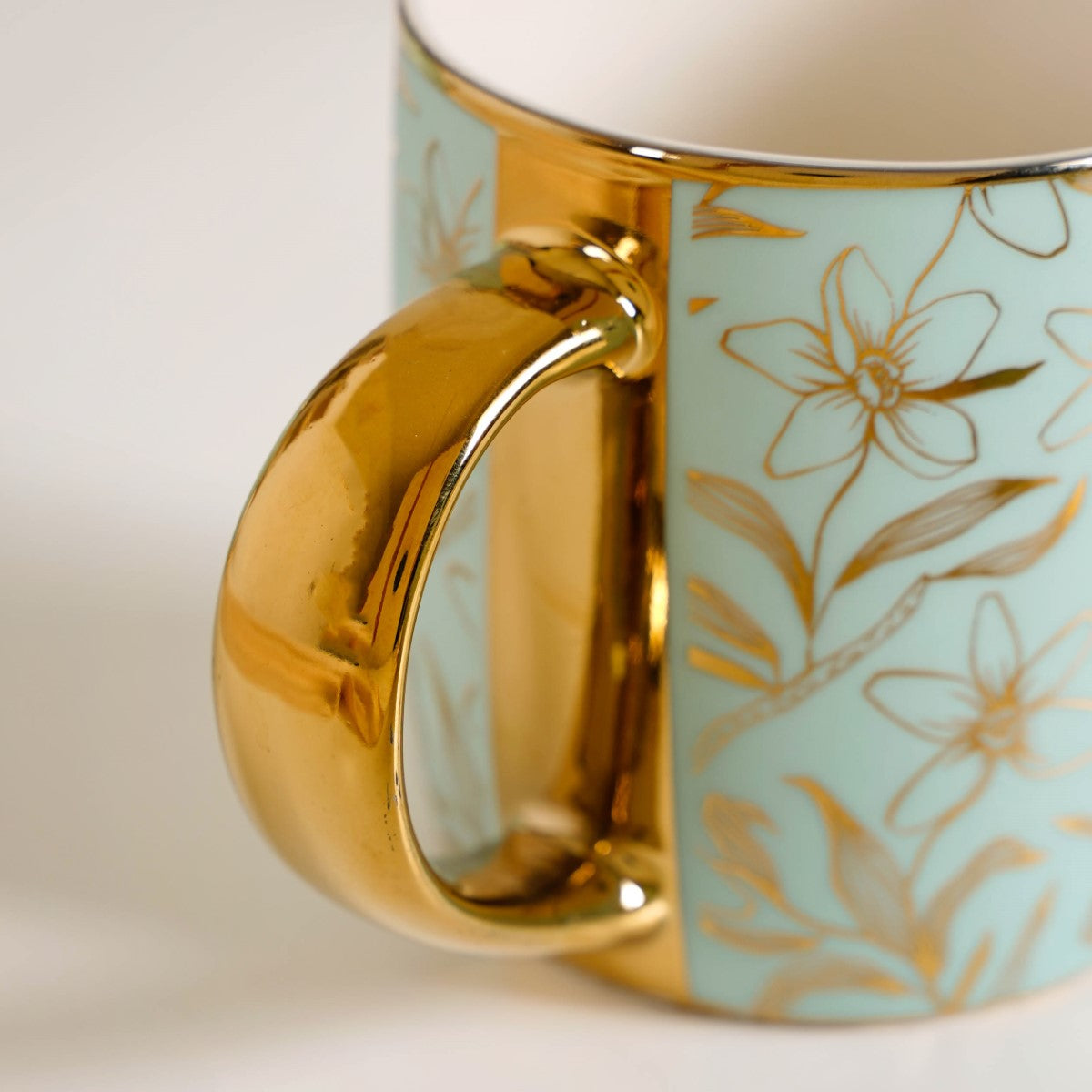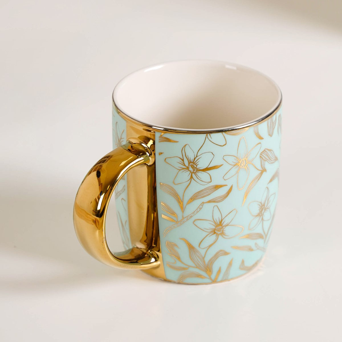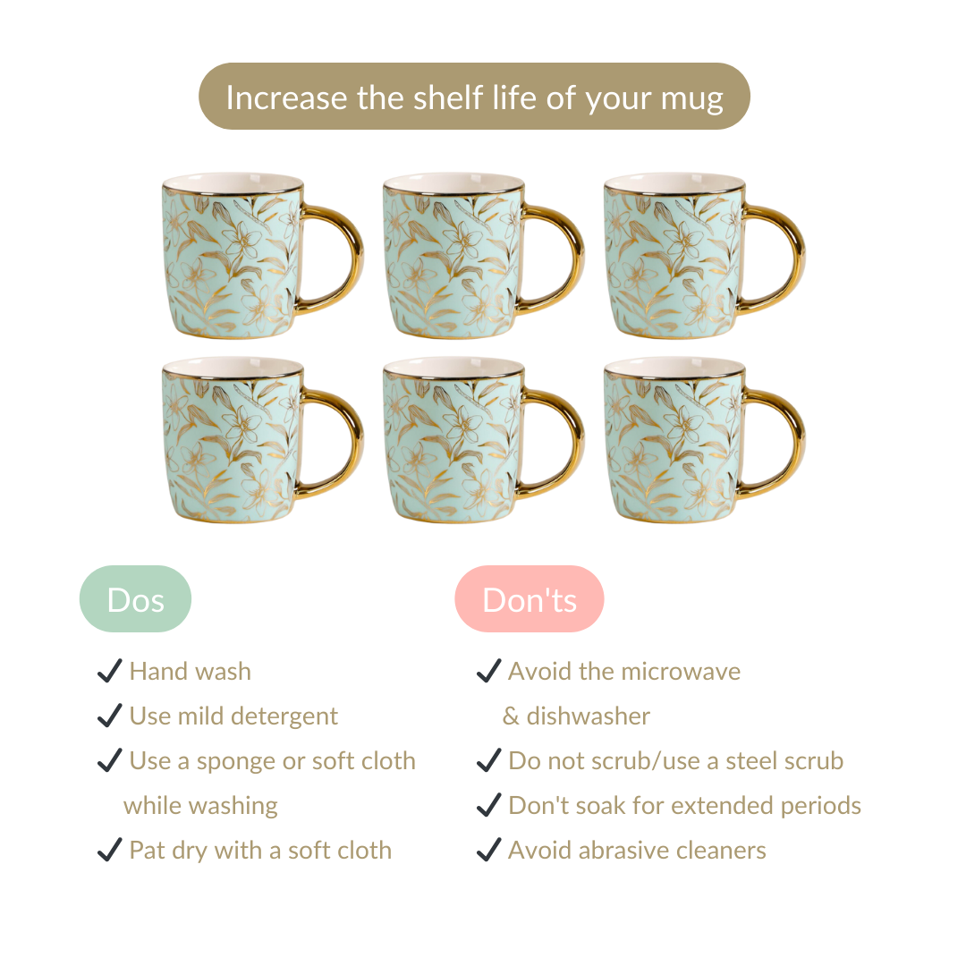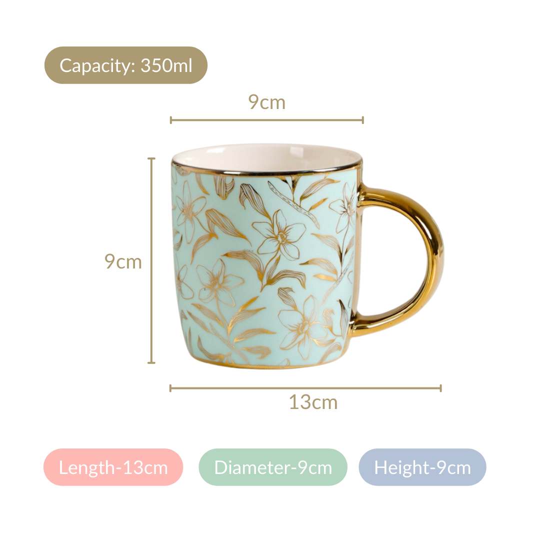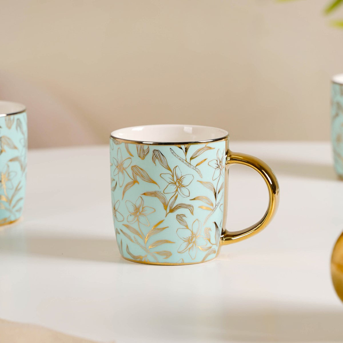 Matte Mint Gold Floral Coffee Cup Set of 6 350ml