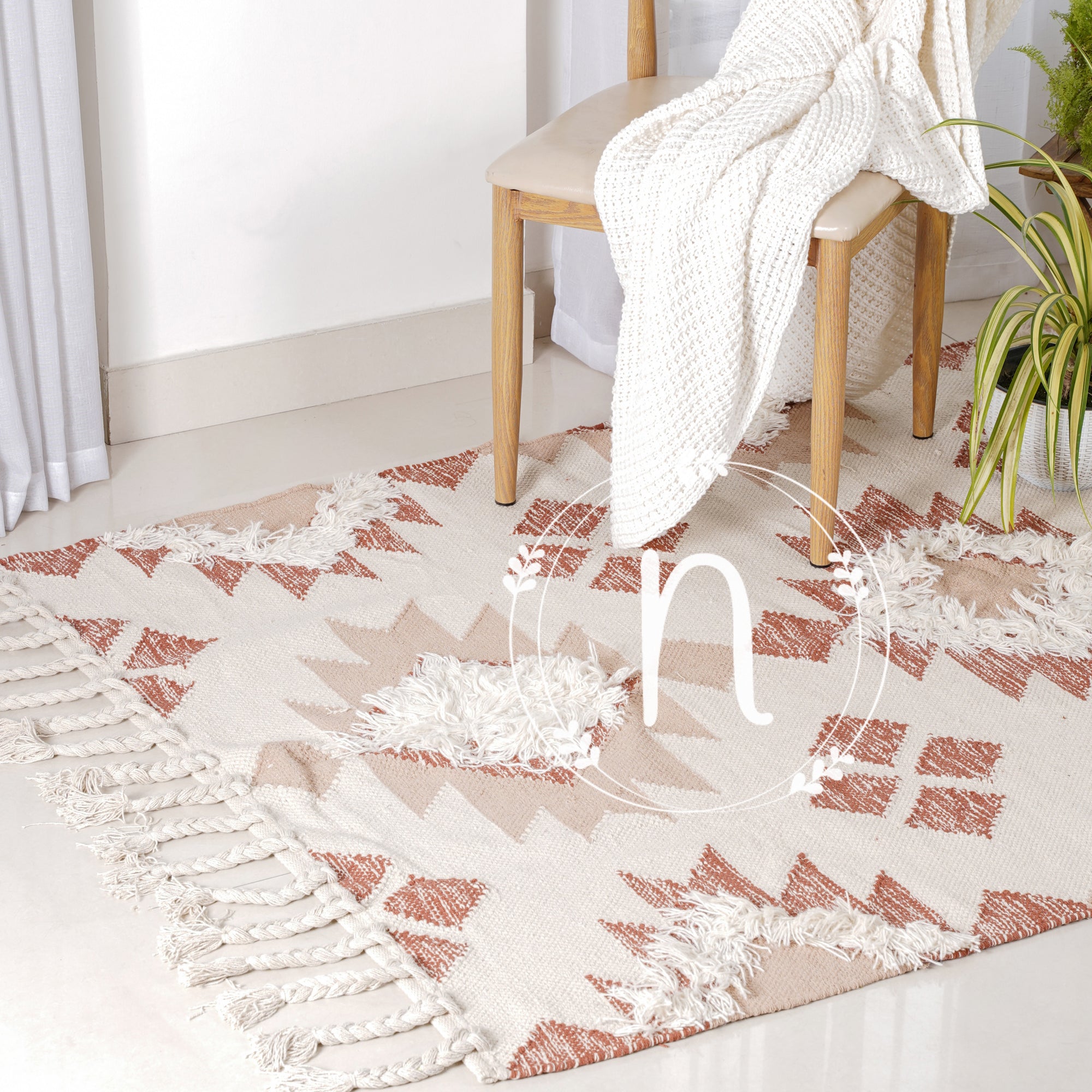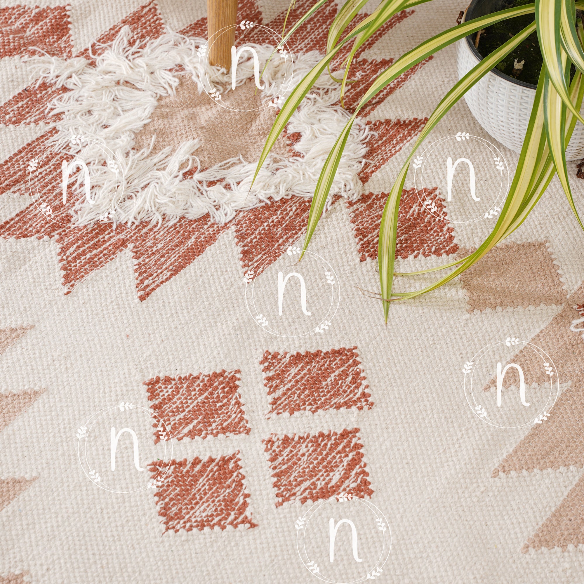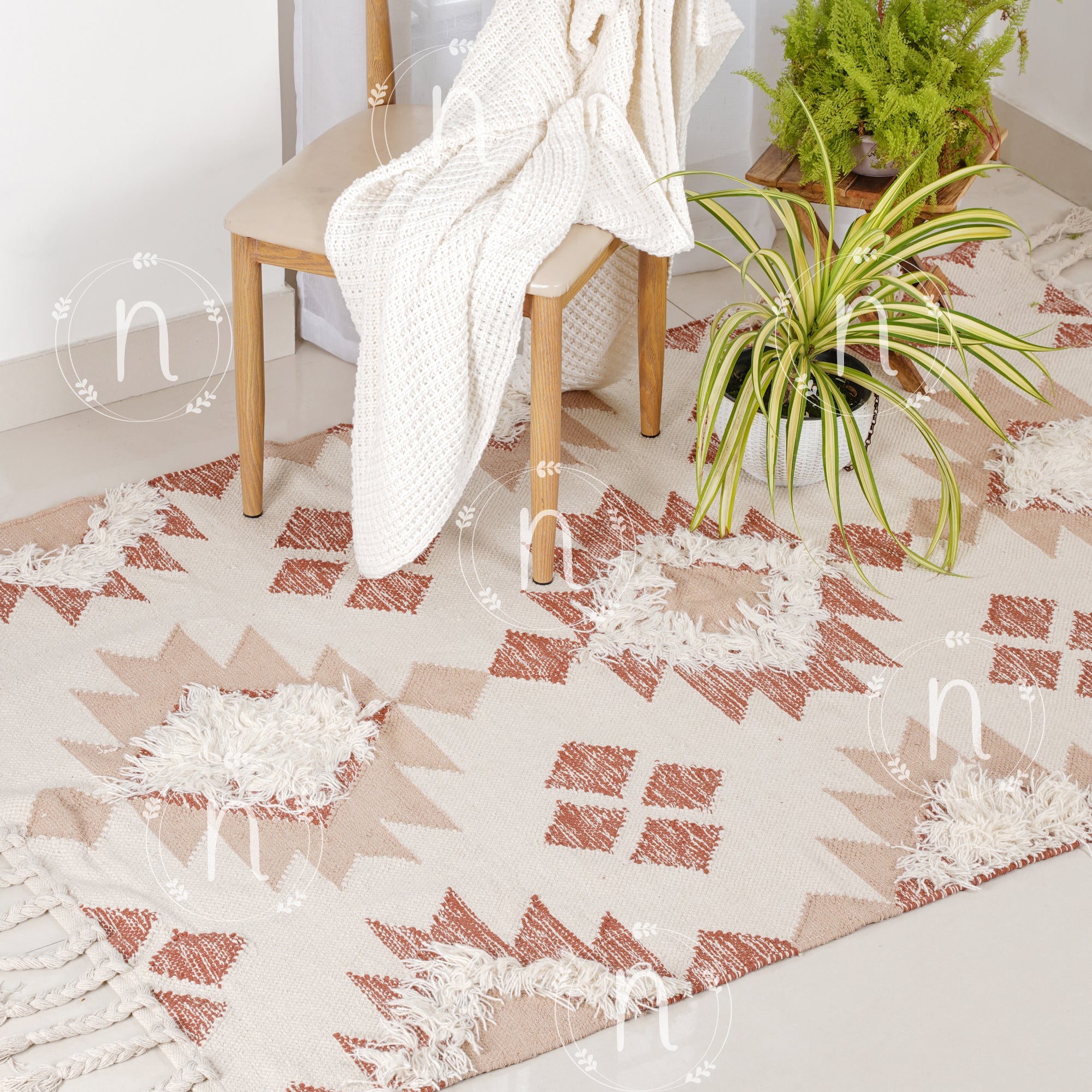 Bringing boho vibes to the setting, the Mayan rug is a great addition to a living room or bedroom area. It has an Aztec bohemian aesthetic to it. The dhurrie carpet is a classy addition to any decor setting and is ideal to be used as an area rug.