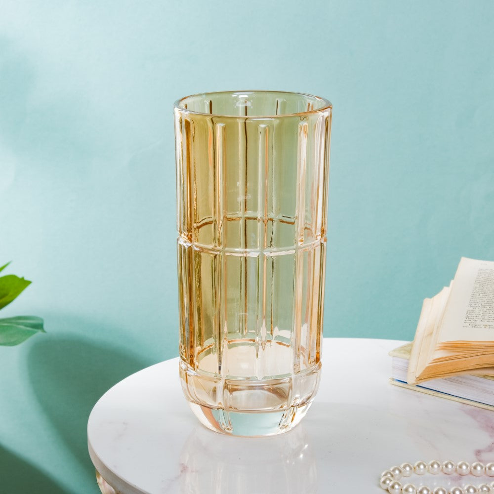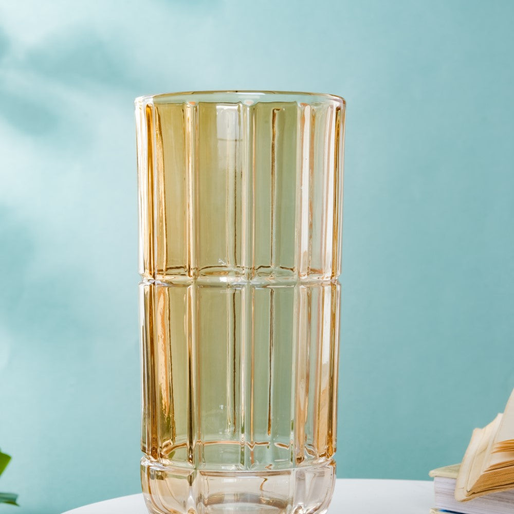 The medium glass flower vase being versatile can be used for a variety of purposes, such as displaying decorative stones. It is also an ideal standalone decorative piece.