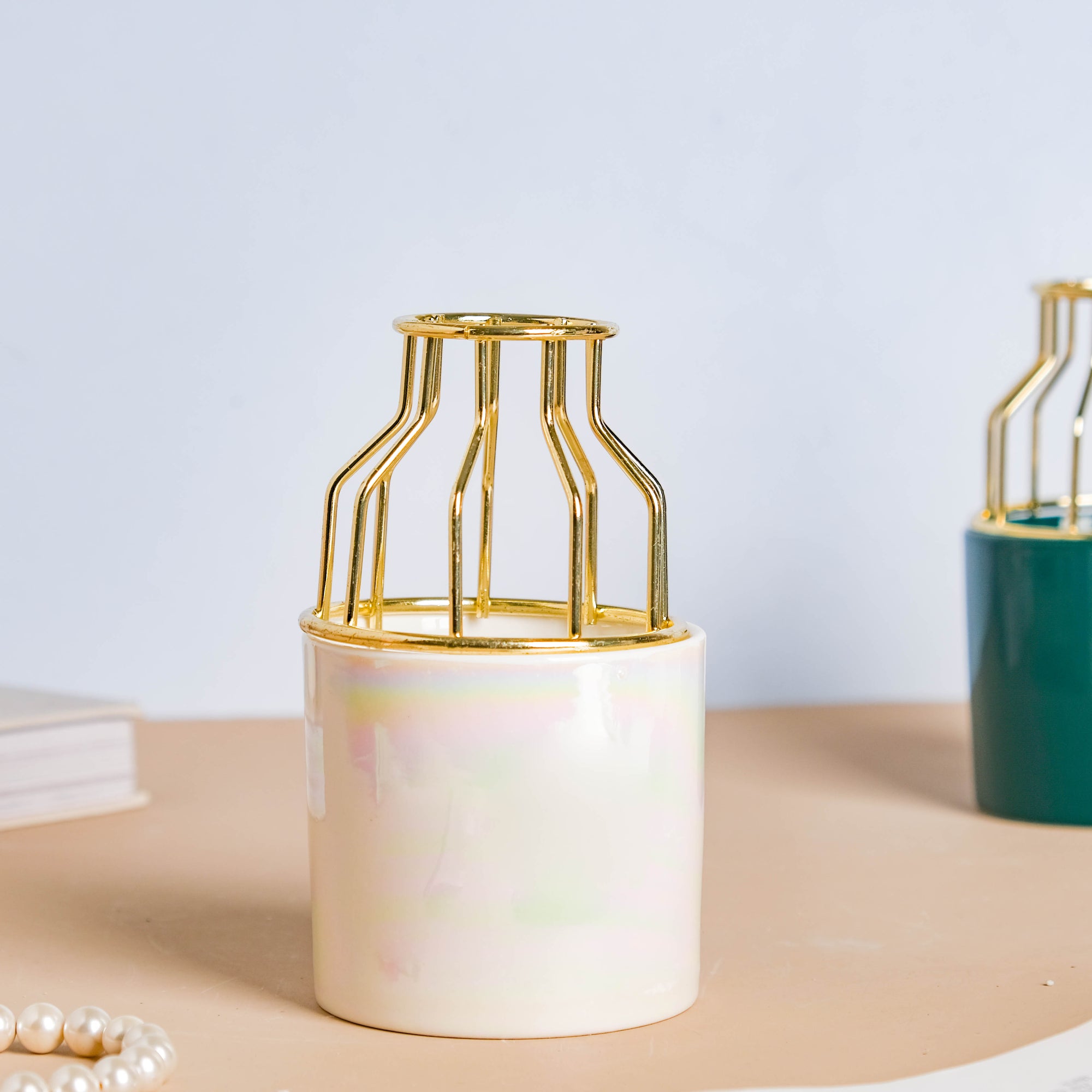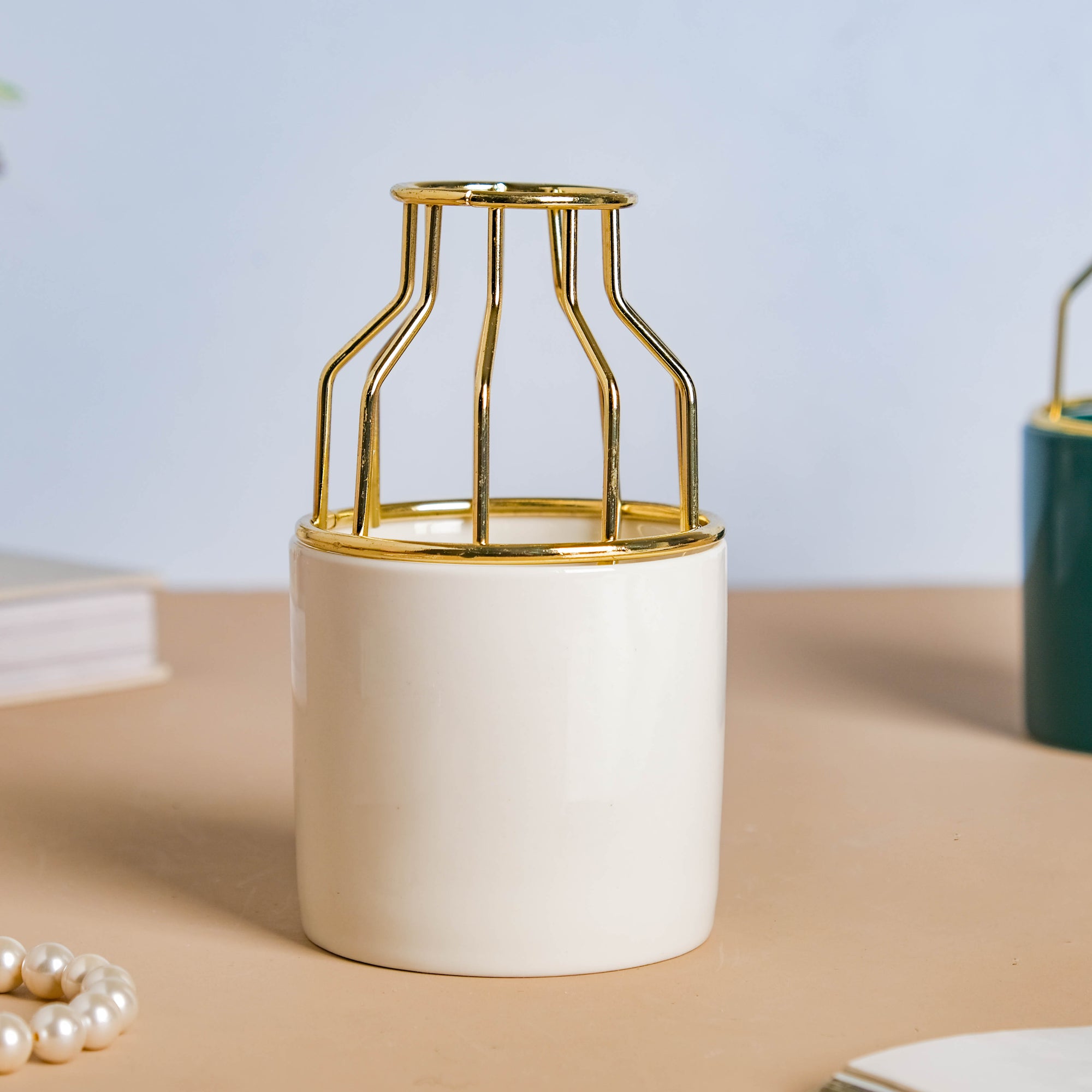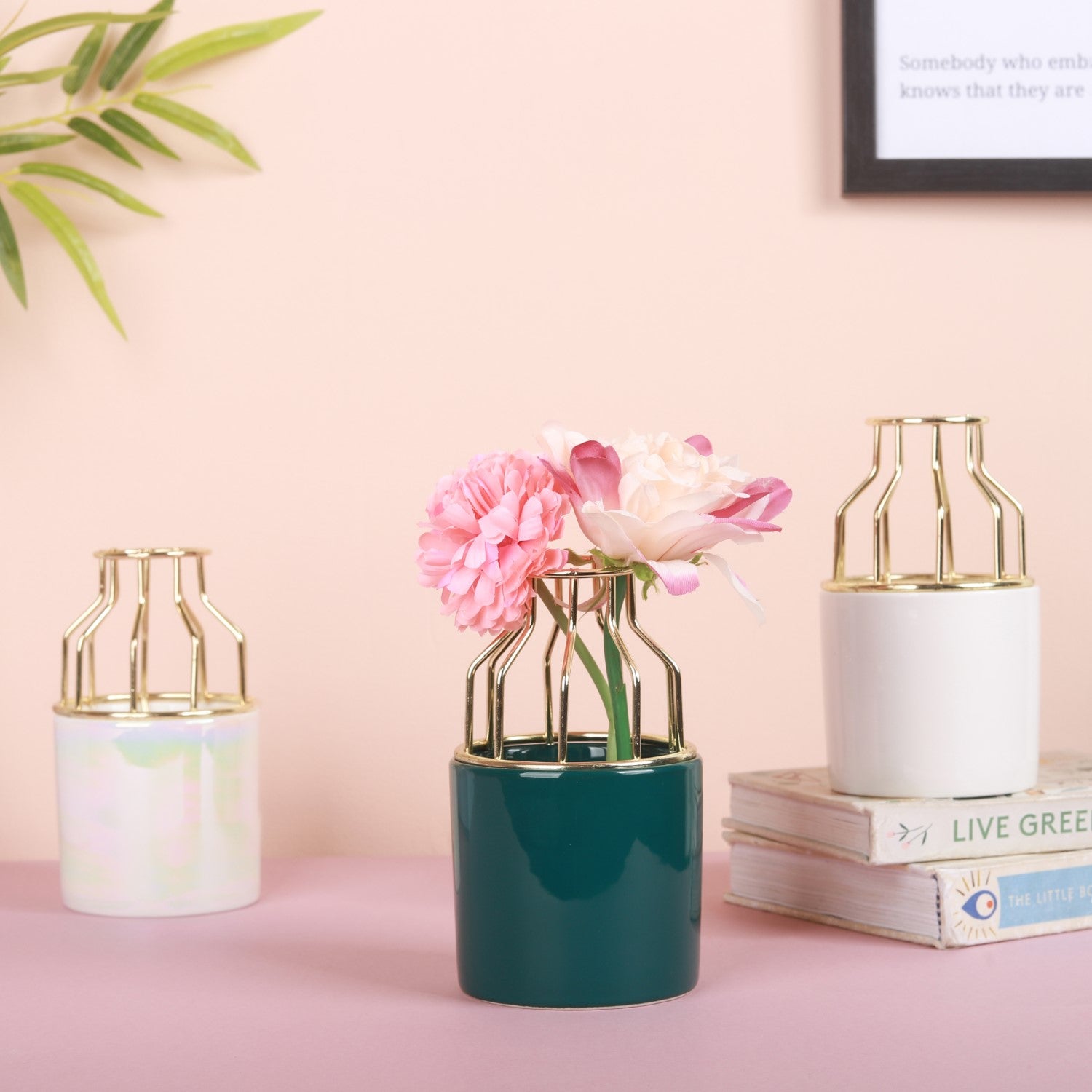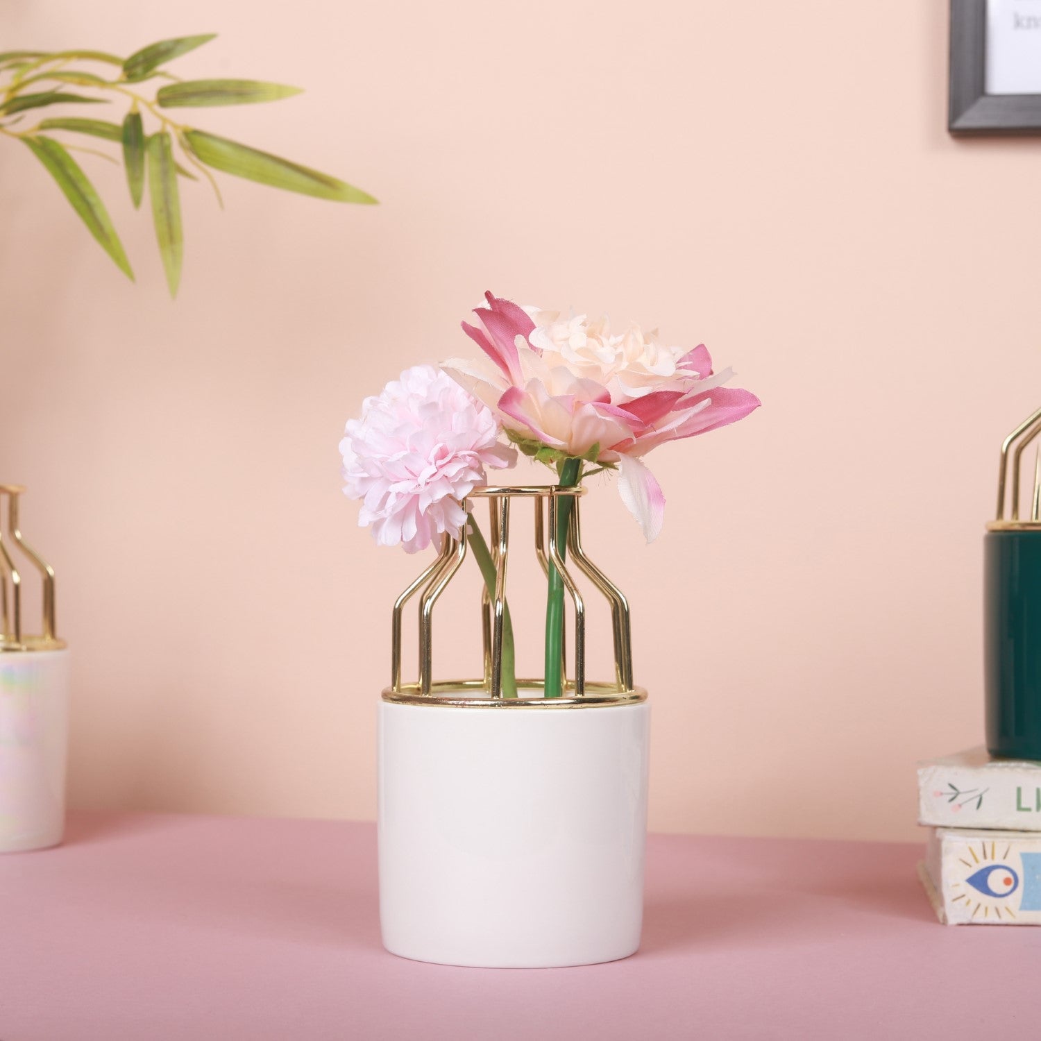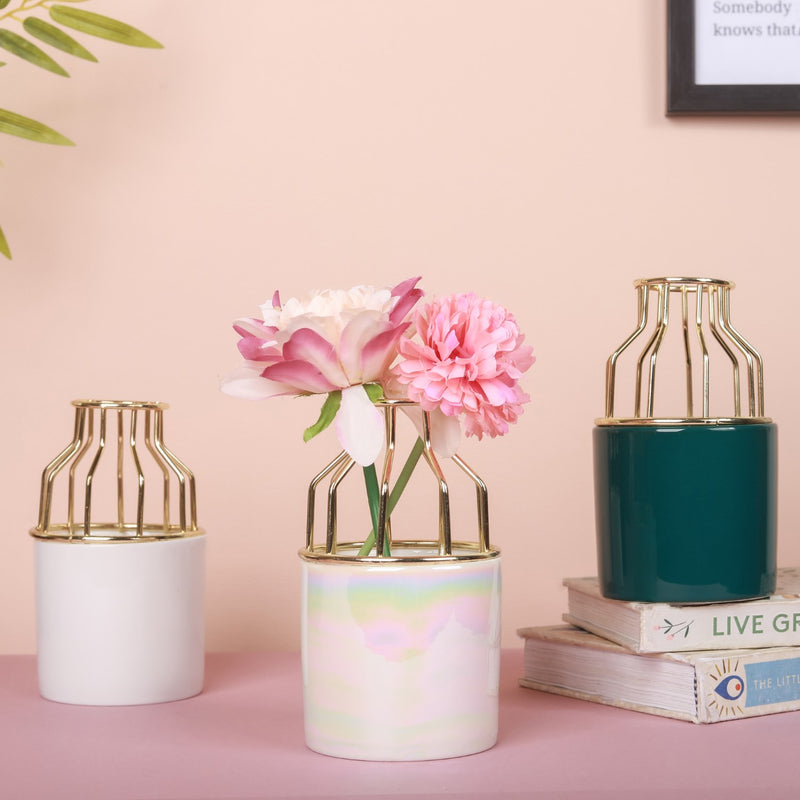 Modernized and chic the metal top attached vase planter is a must-have for all plant enthusiasts. The planter would add that extra class to one’s home. Display artificial indoor plants in it for adding an alluring look to any living space.