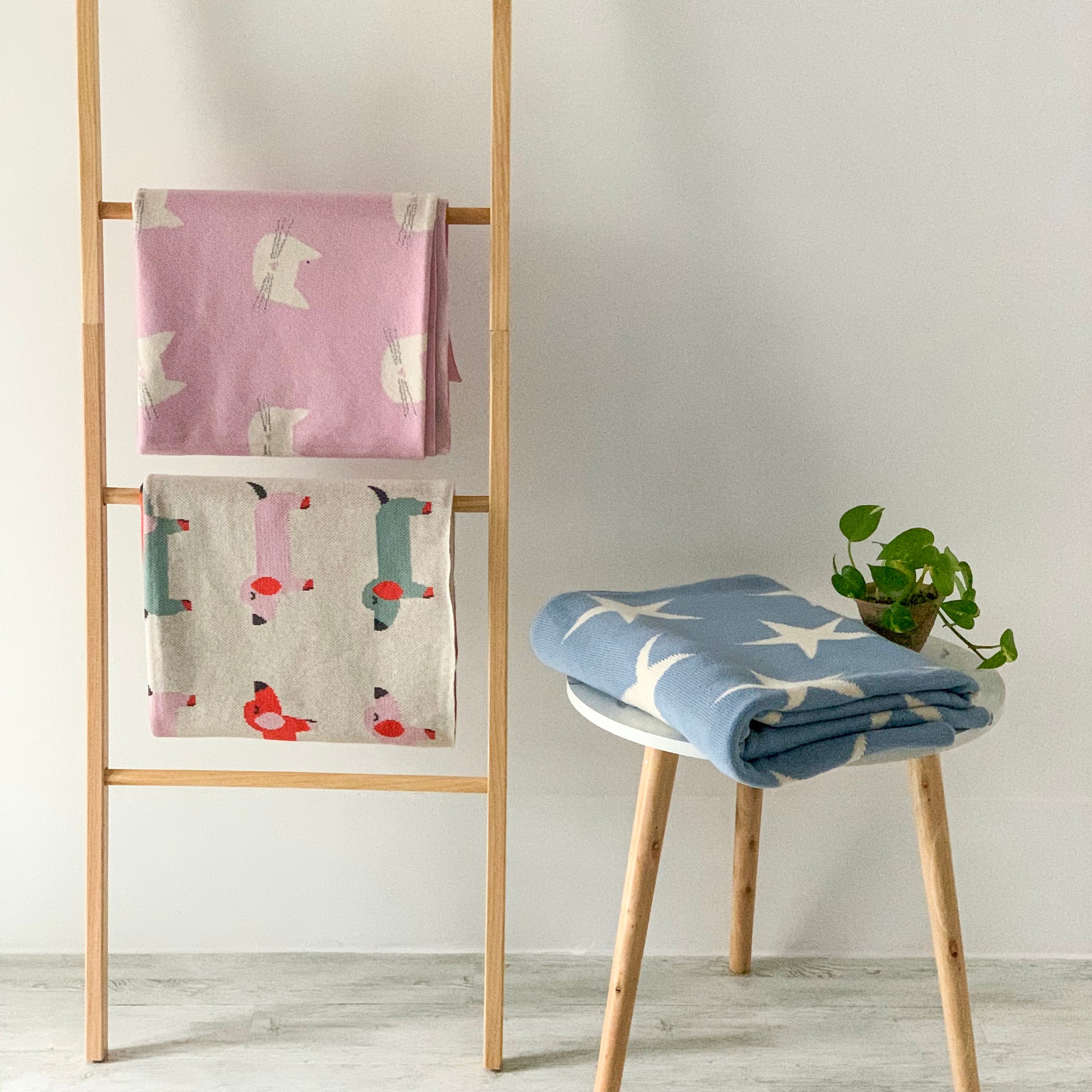 MERRY Star Knitted Throw Blanket - Blue , White