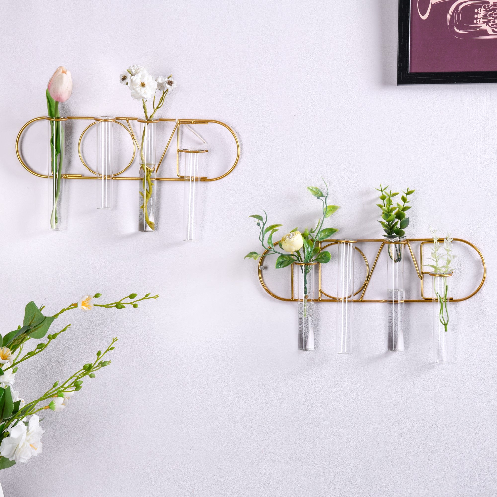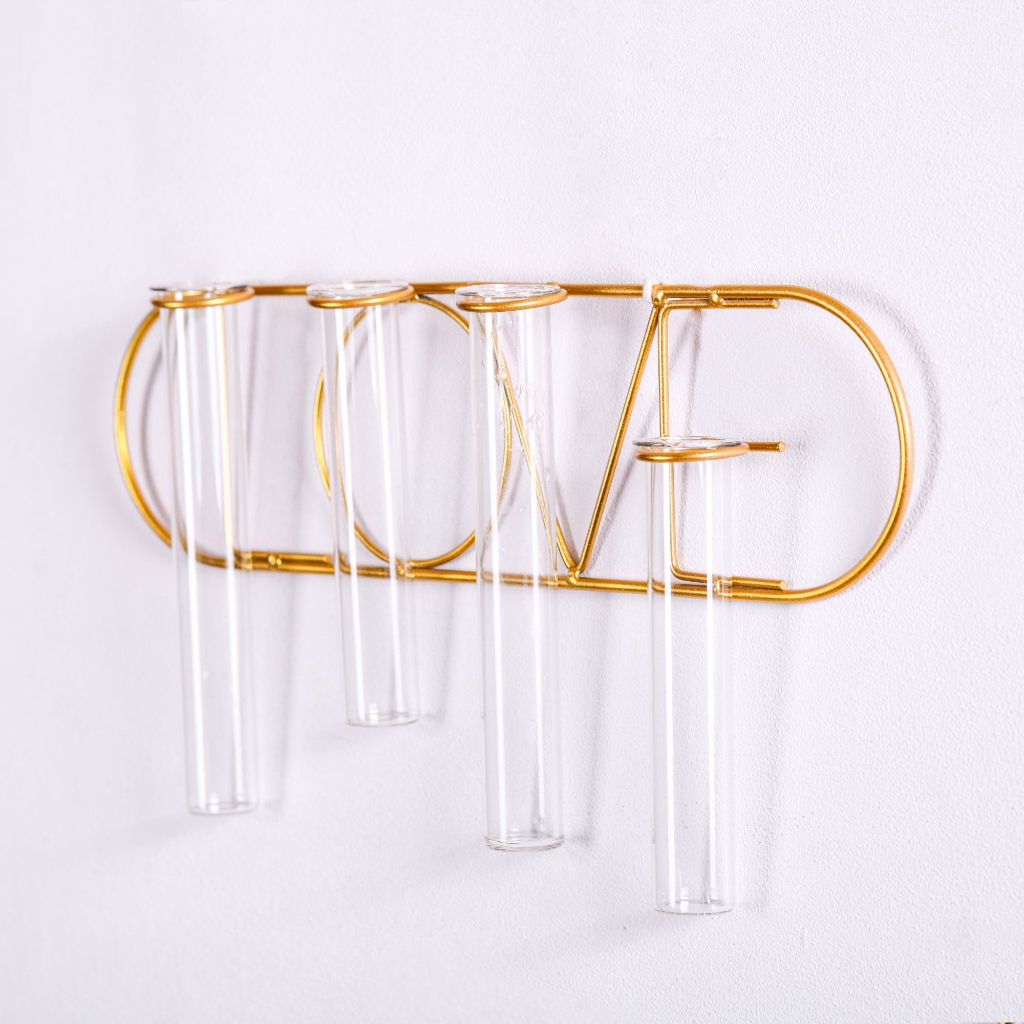 A combination of wall decor and flower vase, the exquisite decor item is perfect for an interesting decor spin in the house. Place the wall hanging in the living room or bedroom and dazzle up the space. Available in 2 variations, one that says 'Love' and one that says 'Home', the metal and glass flower pot contains 4 glass tubes to place plants or flowers - artificial or otherwise and enliven the decor settings.