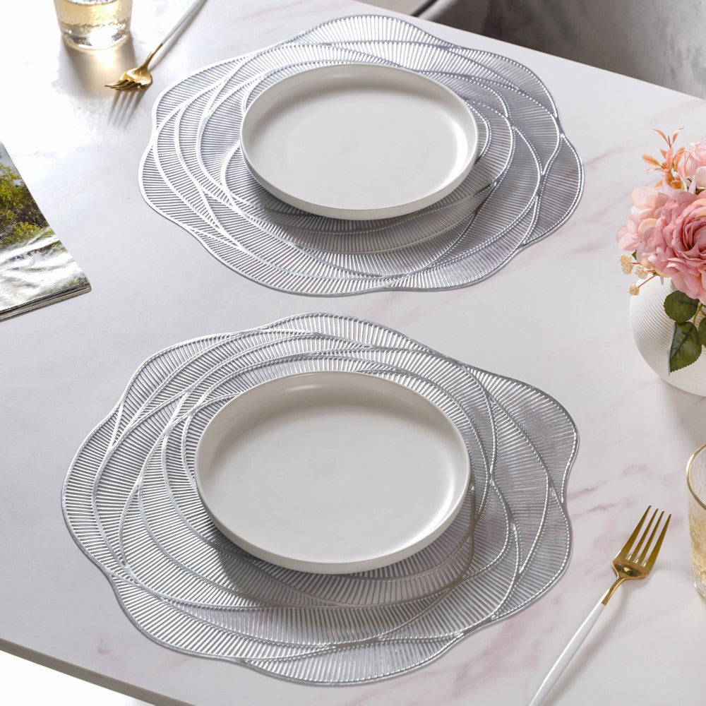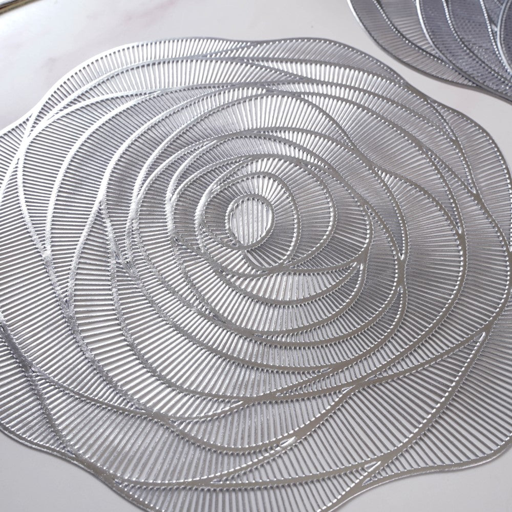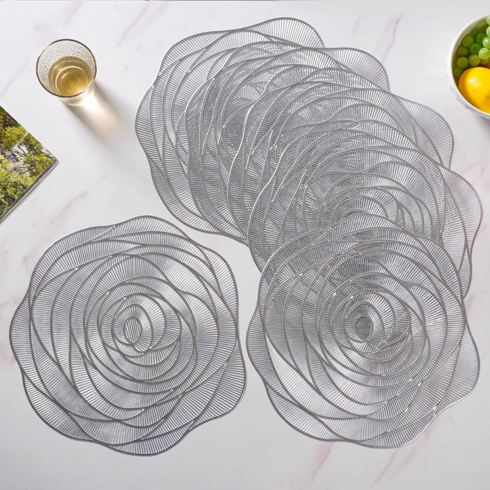 Rohita Sundru Metallic Rose Placemat Silver Set Of 6 15 Inch
