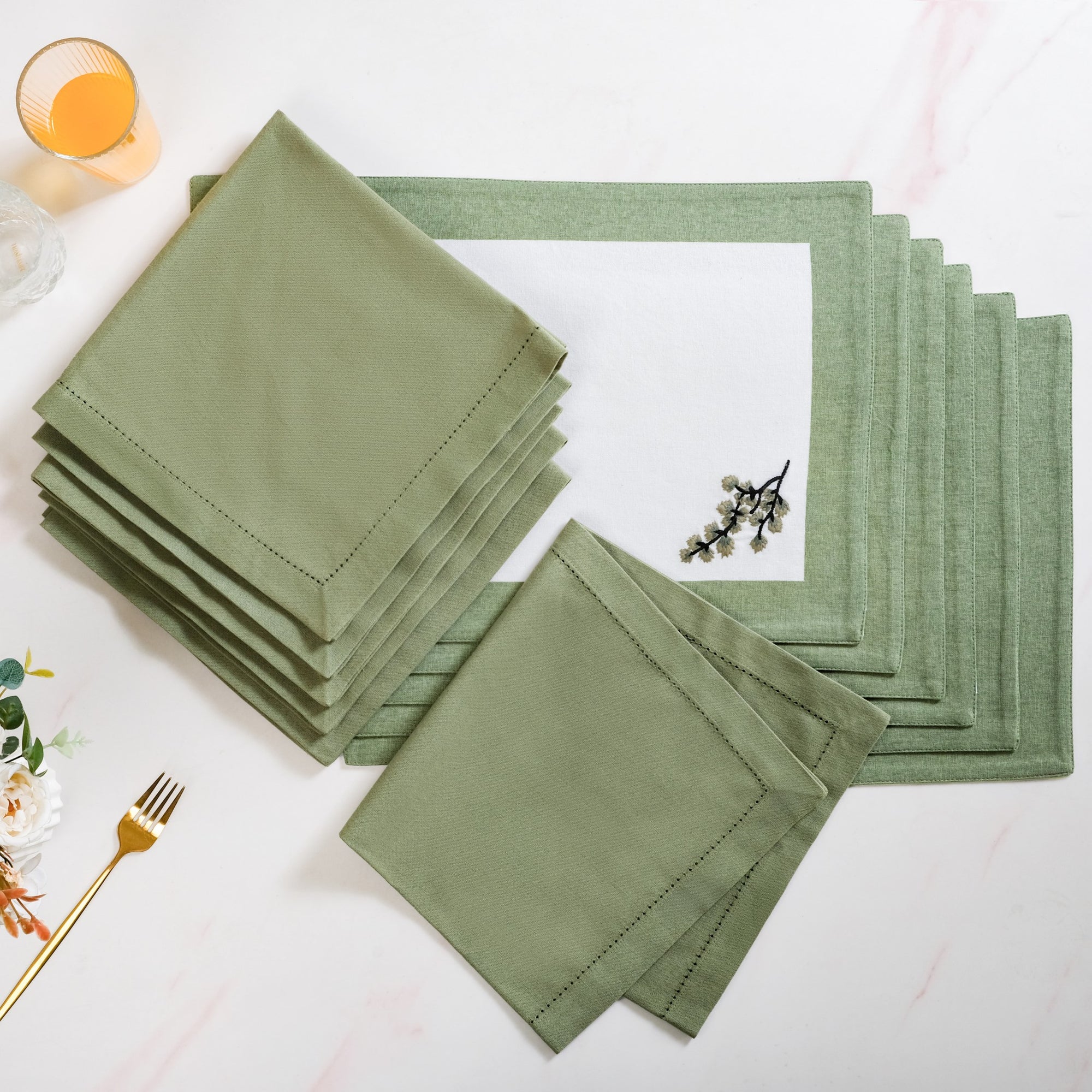Midori Cotton Table Napkin And Mat Set Of 12 In Sage Green