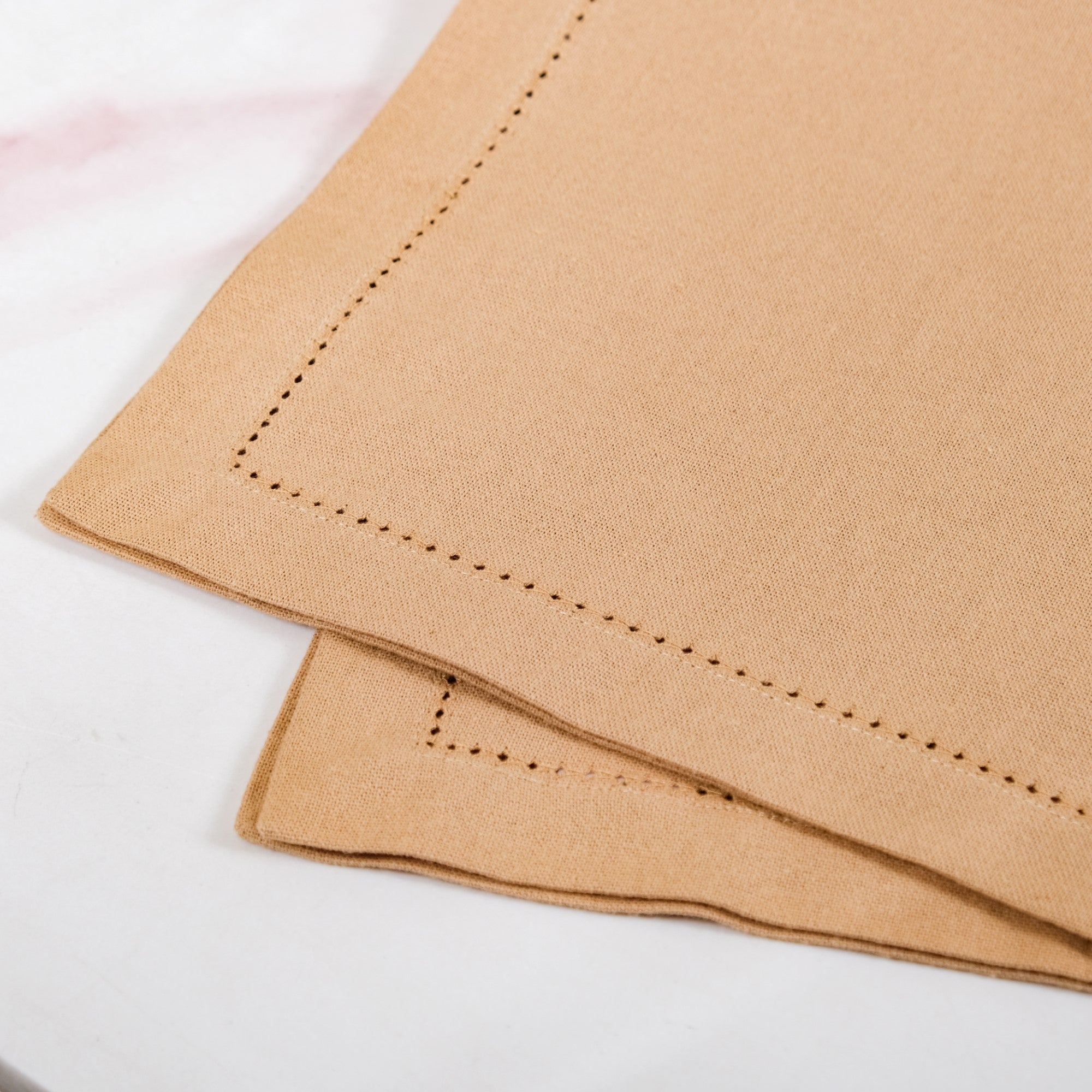 Midori Premium Cotton Hemstitched Dinner Napkins Set Of 6 In Brown