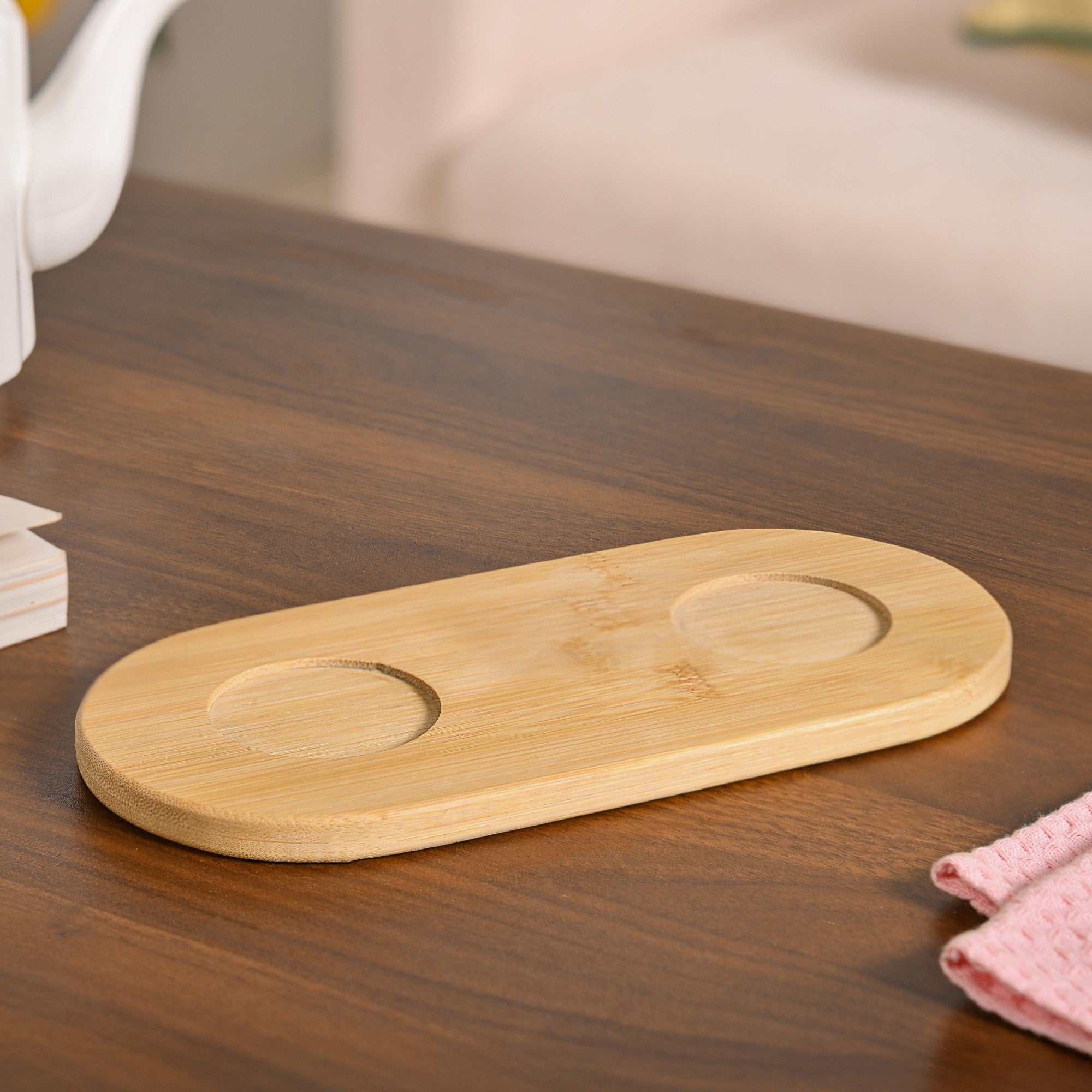 Wipe bamboo tray using damp cloth