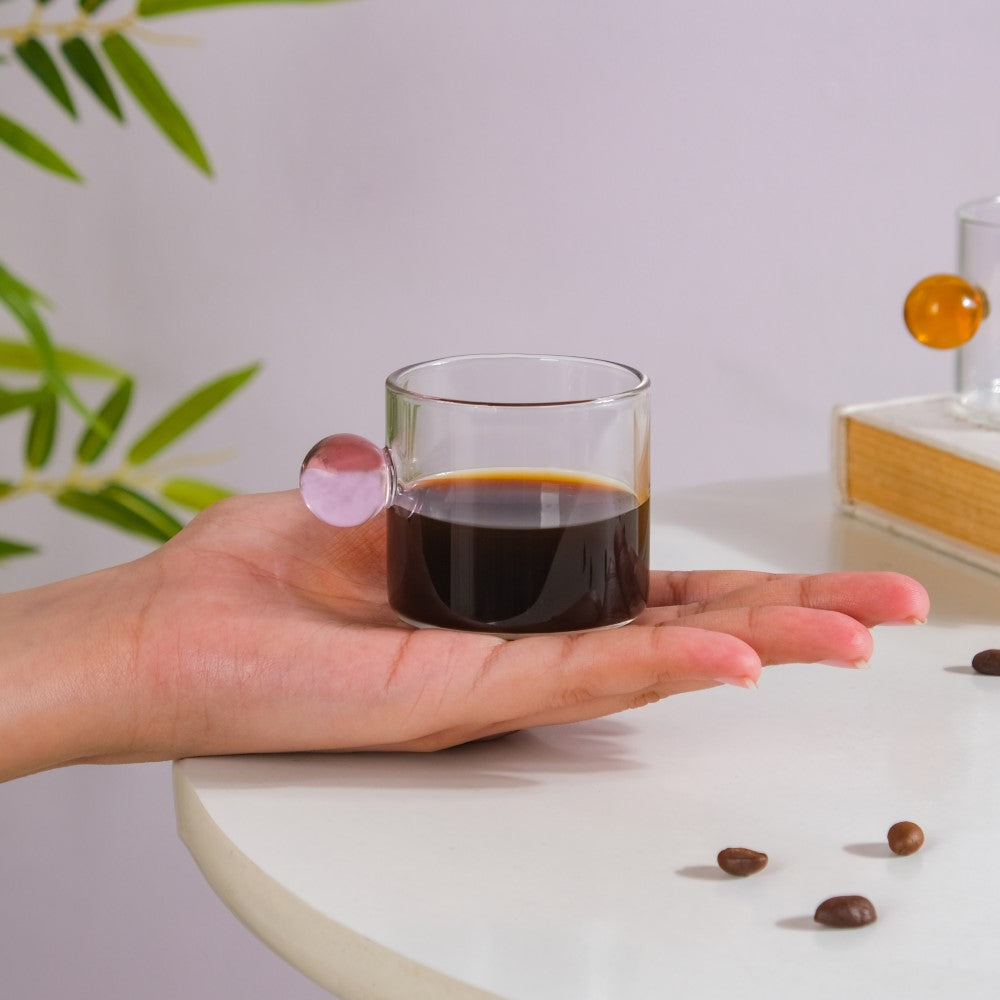 The clear glass mini cup comes with an elegant design that is crafted around a premium borosilicate glass frame. The transparent cup is lightweight and features an easy-to-grip ball handle that offers a seamless drinking experience every time one picks up the expresso cup. Available in a variety of colors, the tiny coffee cup is an excellent gift for any occasion, housewarming, engagement gifts, and anniversary gifts.