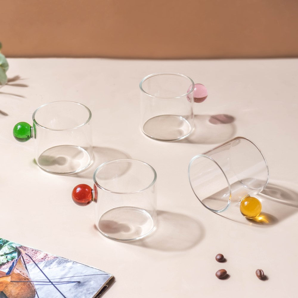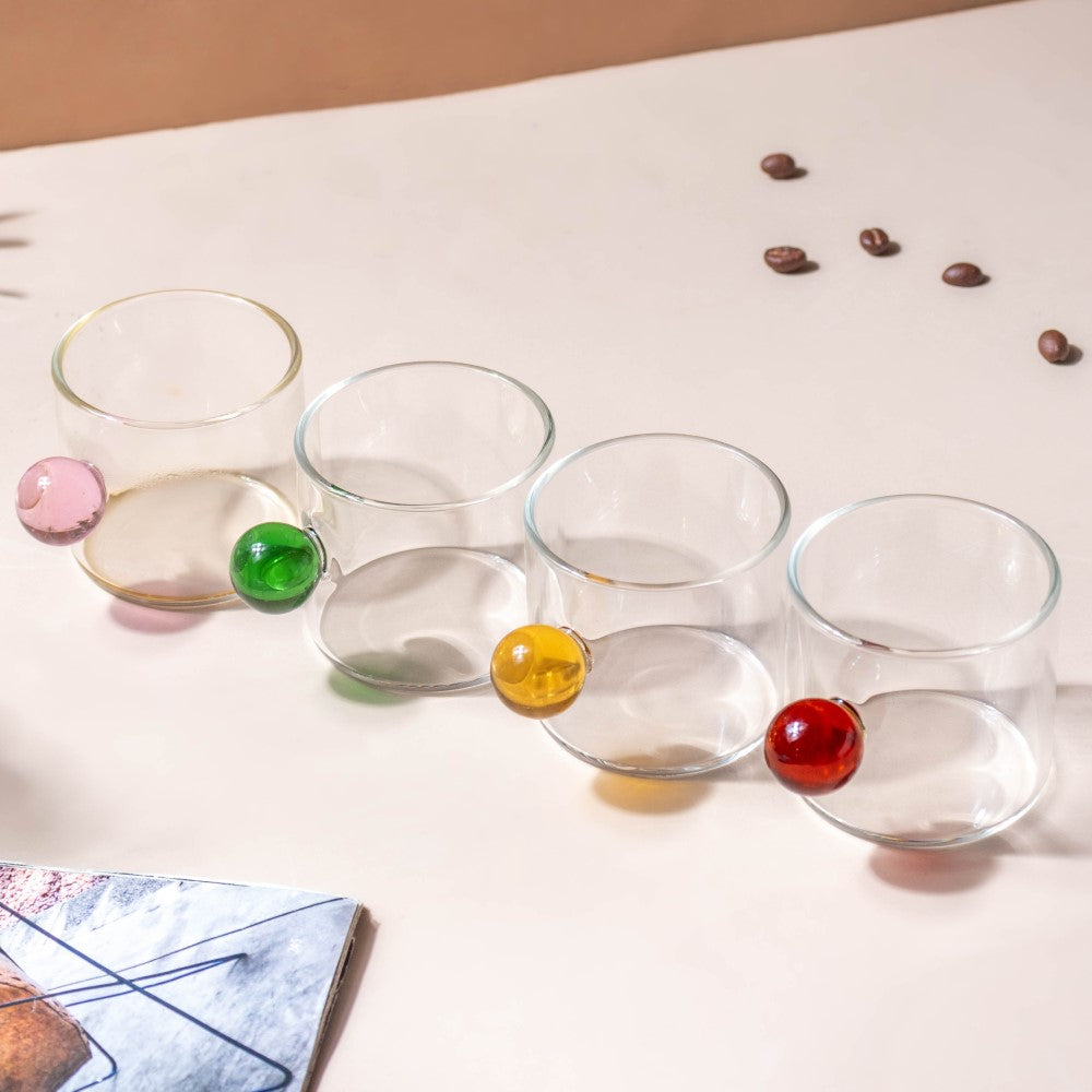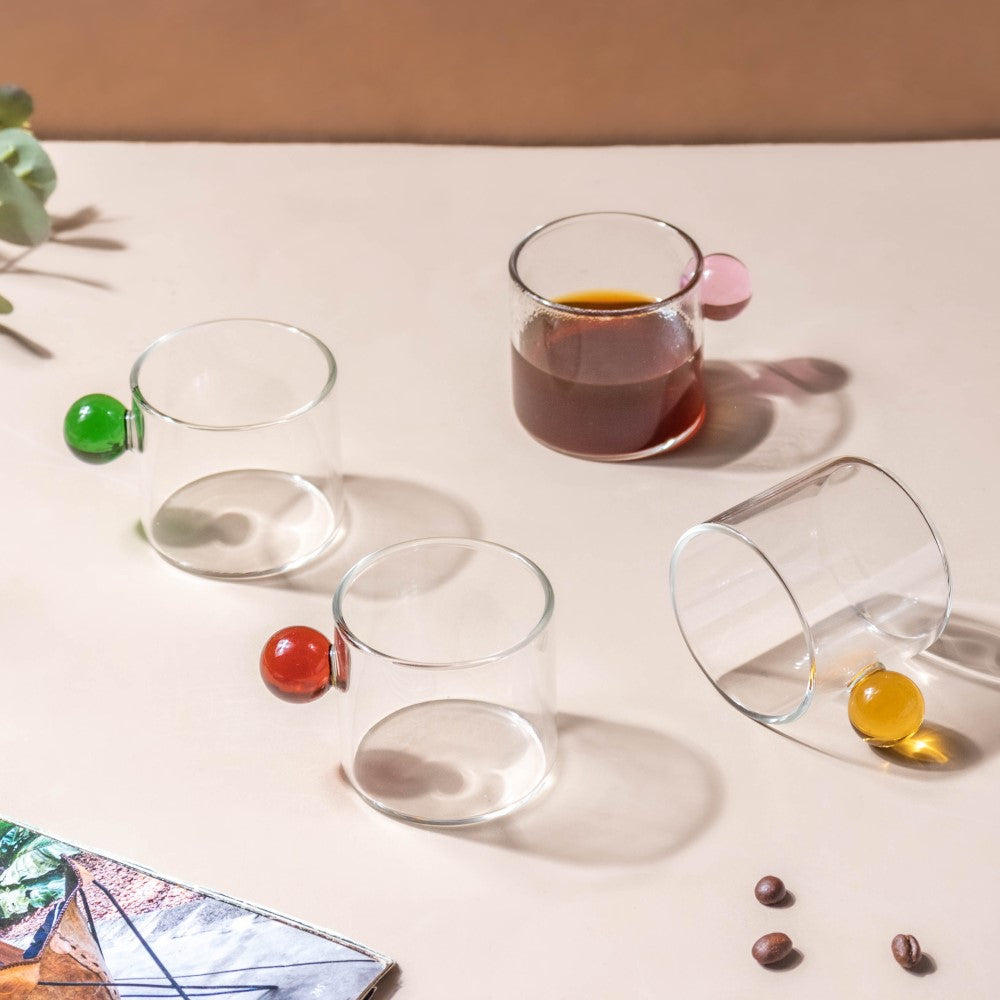 Sip in style and relish an expresso shot to kickstart a lazy morning in the mini transparent cup. The mini cup comes with a red ball handle to elevate its appeal. From expresso to aperitif, the round glass cup is a brilliant piece of crockery to savor any sort of beverage. Available in four variants, the glass cups are an excellent choice for an elegant kitchen counter.