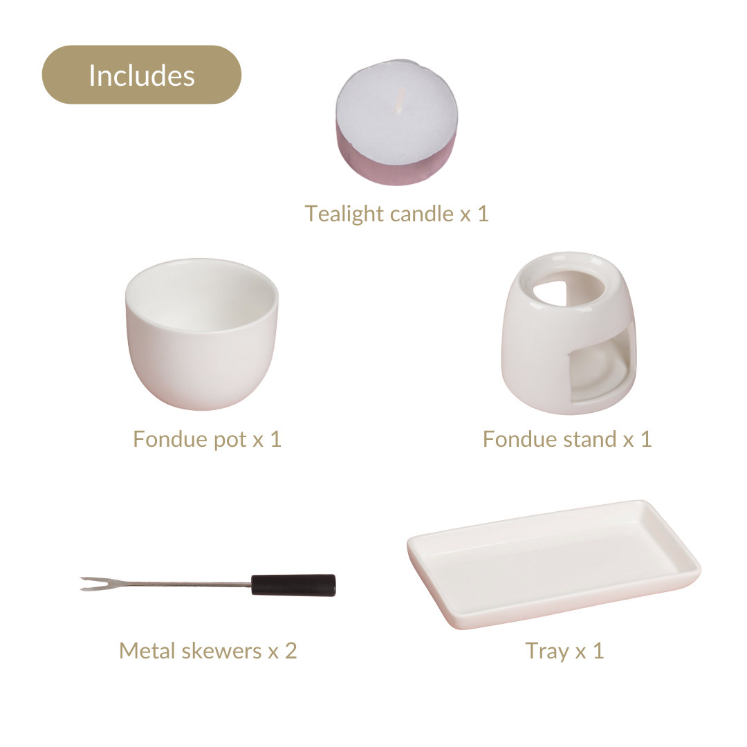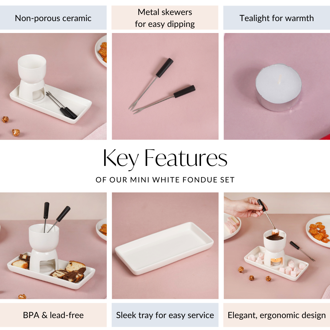 Utility: Perfect for both savoury and sweet cravings, its compact size and easy set-up make it ideal for spontaneous intimate gatherings or indulging in cosy nights in. Dip fresh fruits, artisan bread, or delectable sweets into creamy cheese or rich chocolate fondue and create memorable moments with friends and family.