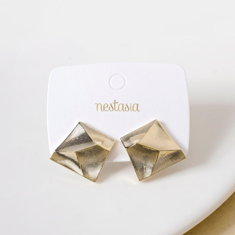 Nestyle: Opt for a minimalist black or white tailored dress to let the earrings shine as the statement piece. A high-neck or off-shoulder design can enhance the geometric nature of the studs.