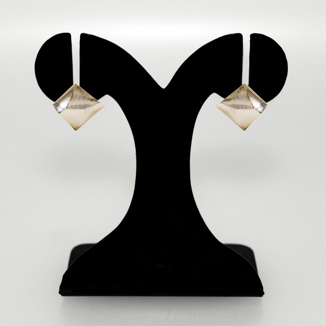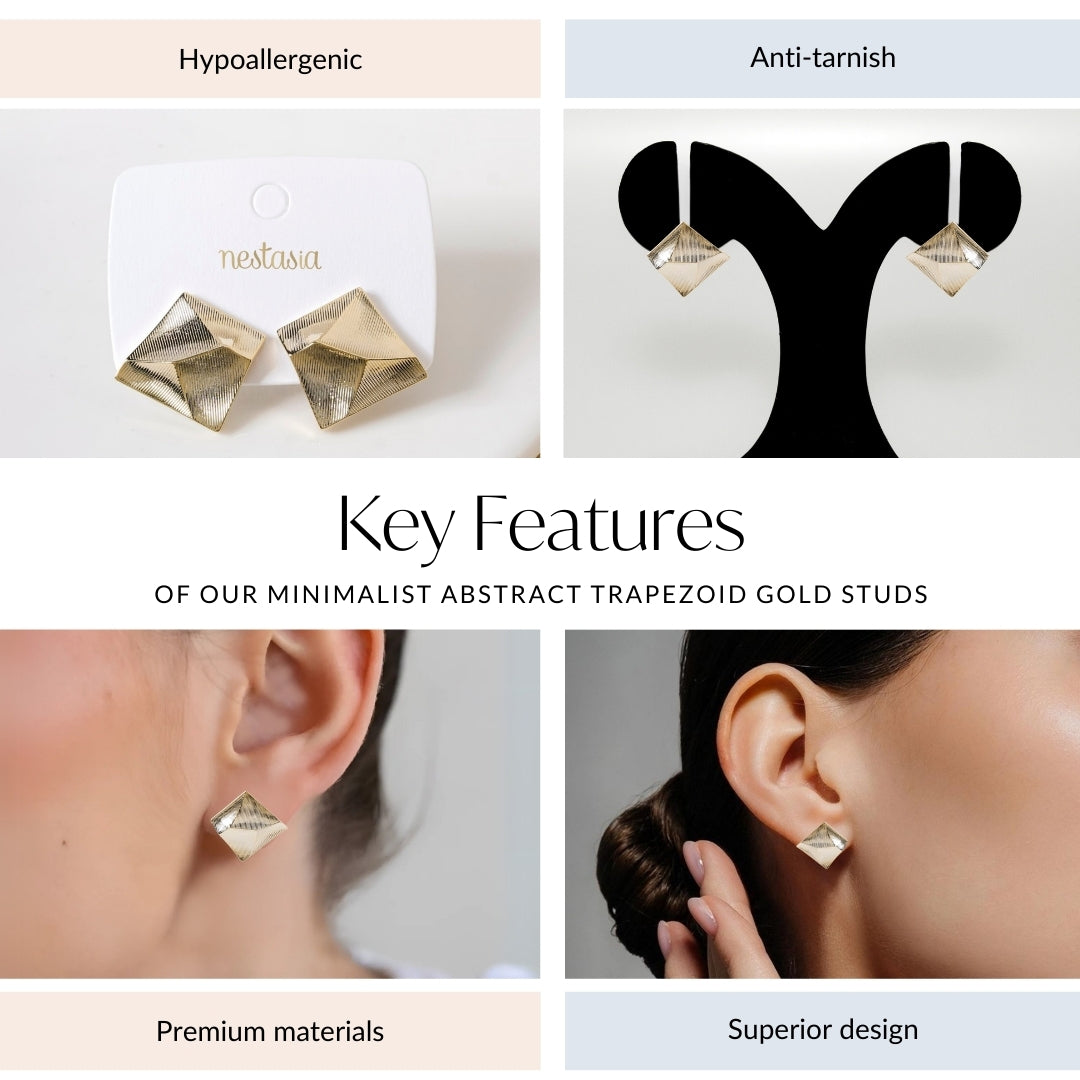 Sculpted to perfection, the pair of gold-toned metal stud earrings captures the essence of modern artistry with their trapezoid shape and raised 3D abstract textures. The striking design combines geometric precision with dynamic texture, creating a bold statement that stands out. Drawing inspiration from contemporary abstract art, the earrings evoke a sense of fluidity and expression, where form and texture merge to create something truly unique. Ideal for adding a touch of sophisticated creativity to any outfit, these studs are a perfect fusion of art and elegance.