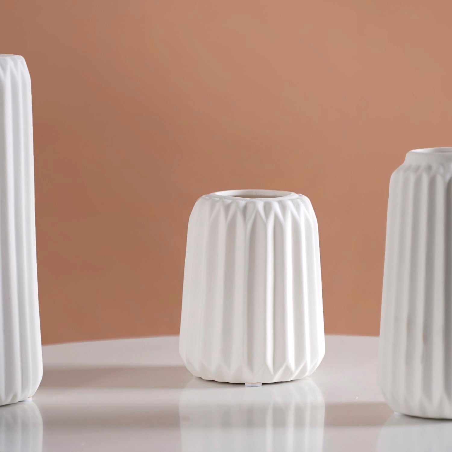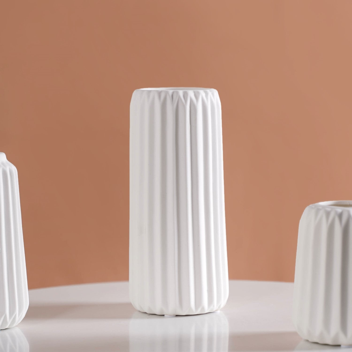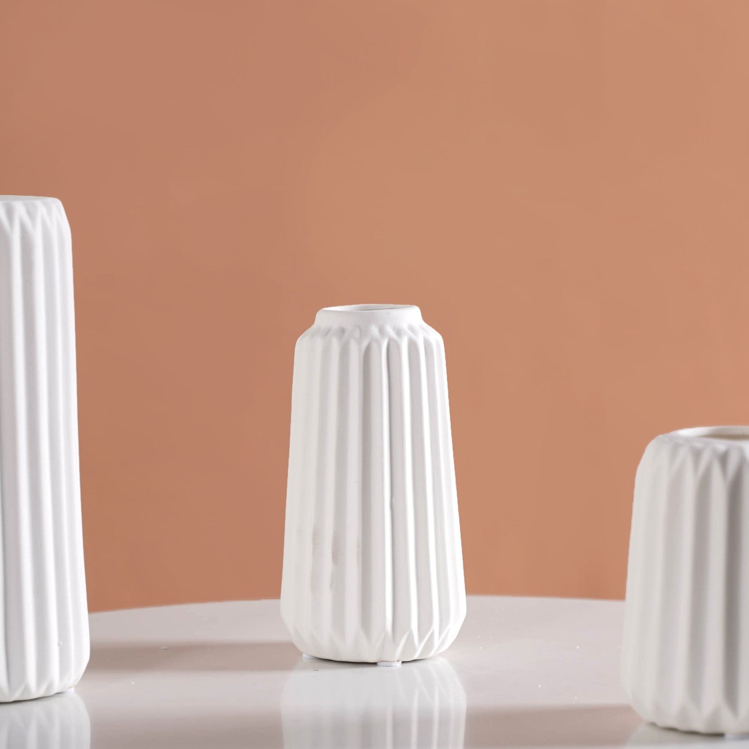 Design: Crafted in a minimalistic Scandinavian style, each flower vase features a ribbed texture that adds depth and character. The sleek white colour with a matte finish ensures versatility, making the vases a seamless fit for any decor setting.