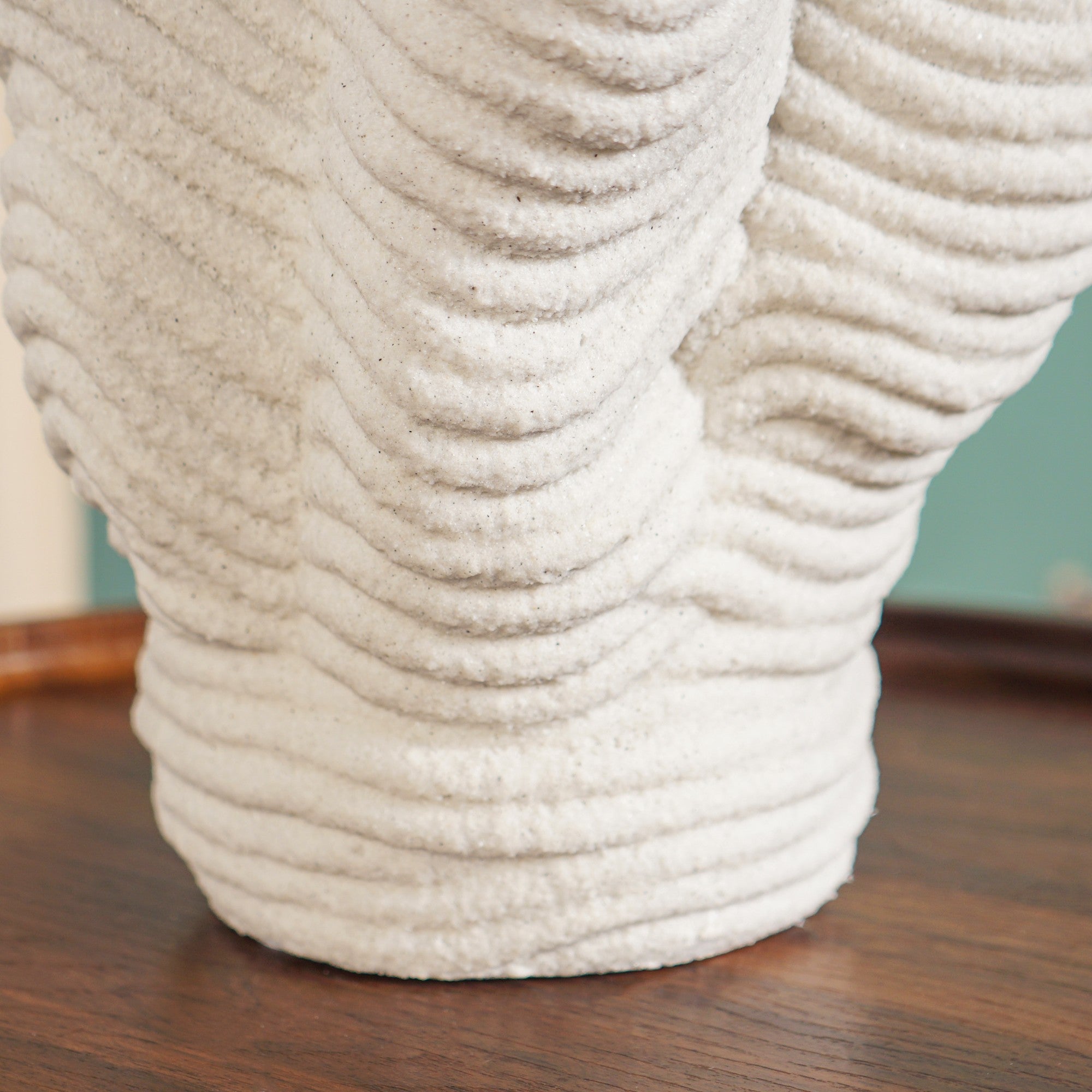 This is a focal piece that brings a natural, artistic touch to your home. A textured ribbed organic vase, which is a modern abstract wavy piece, perfect for showcasing botanicals.