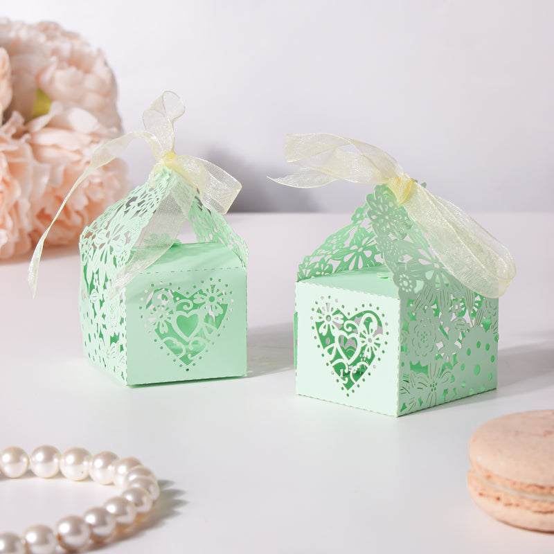 Ideal for gifting candies, chocolates, small candles, sweets, and flowers, this light green gift box is designed to steal hearts. The paper is creatively designed with a laser-cut technique to highlight the intricate features. The set of 20 boxes comes in flat paper cutouts which can be folded along the dotted lines to make small gift boxes.