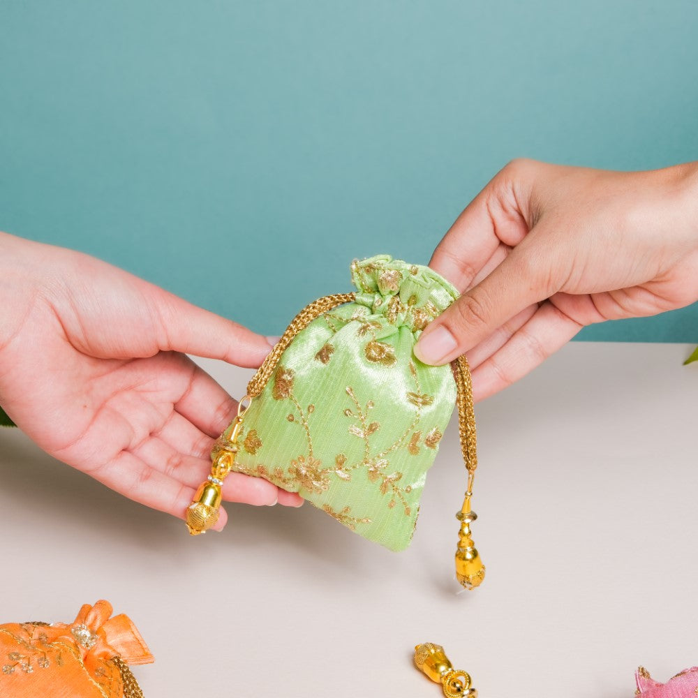 Products Included: 1 set of 3 different coloured potli bags