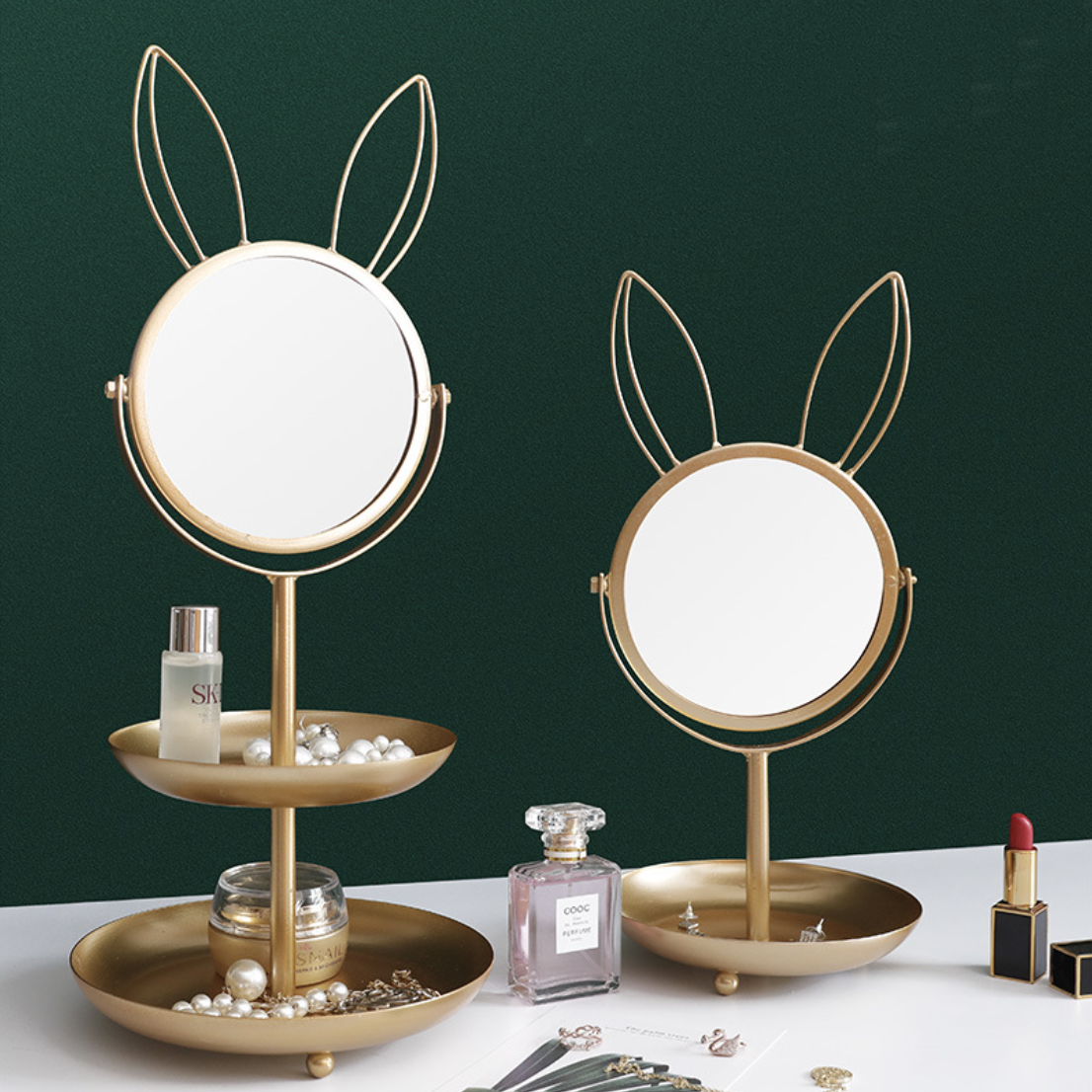 The mirror's elaborate gold pattern lends a regal touch to any setting, whether it's on the dresser or in the bathroom. The mirror may be used to do makeup or as a decorative accent piece. With the mirror on a stand, one will feel the royal vibes around. The mirror is made from high-quality materials. Nestip: Gift the mirror at a housewarming. Size: 36cm H x 16.5cm diameter Color: Gold Material: Resin and glass Products included: 1 small mirror Style: WXNU331