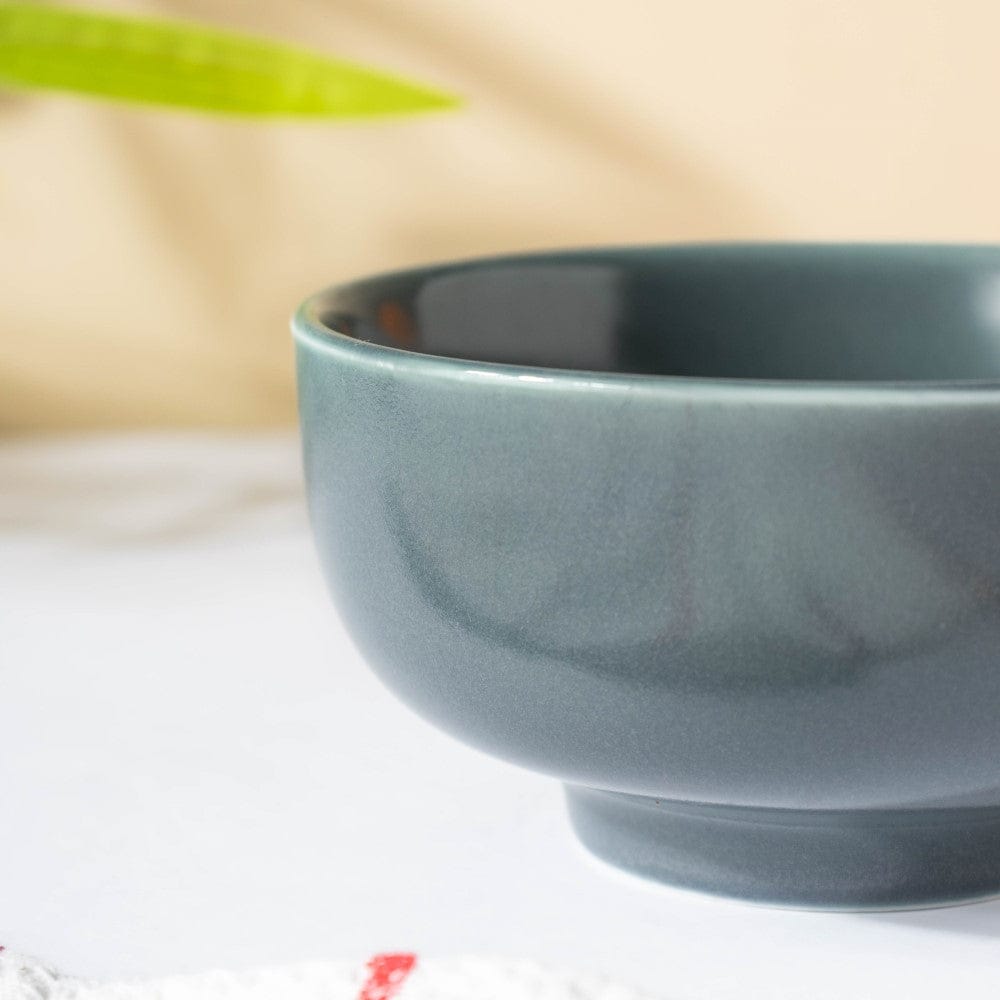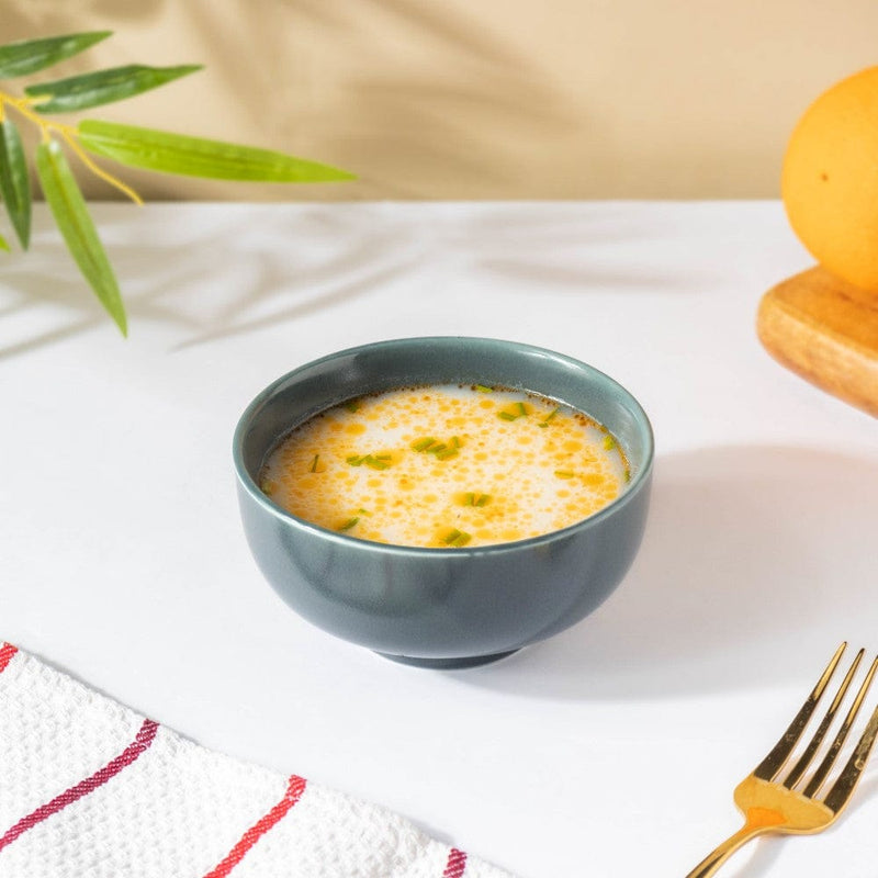 The grey bowl is crafted in ceramic which makes it both microwave and dishwasher-safe. Featuring a glazed sheen outer surface and a modernistic grey colour, the ceramic bowl can be easily paired with varied coloured dinner plates and snack plates. One can serve small portions of curry, lentils, fried food, or any side gravy and dishes. The bowl is great to dish out yoghurt and curd to the guests along with the main meals. One can even use the ceramicware as an ice cream bowl, or a breakfast cereal bowl.