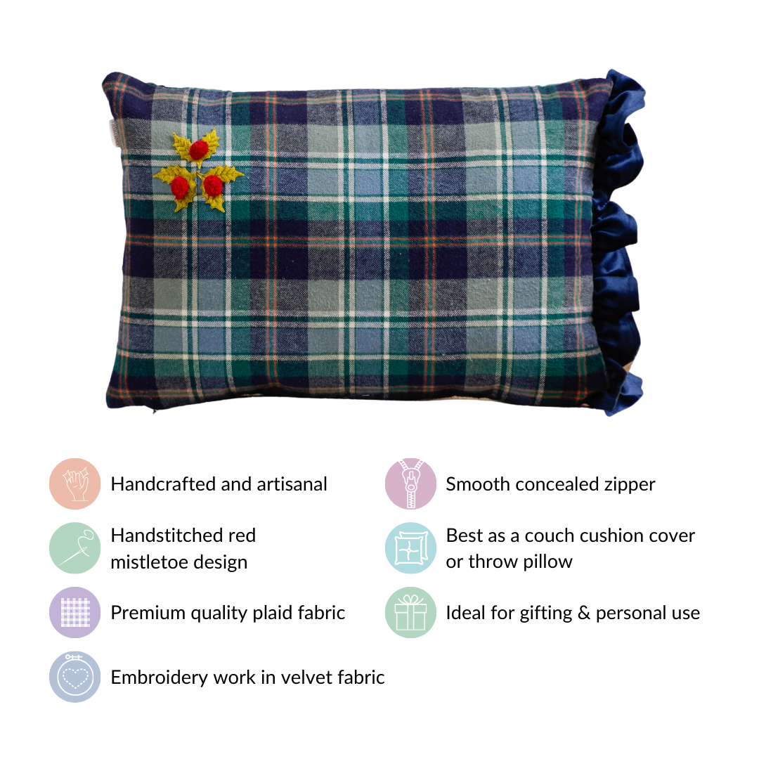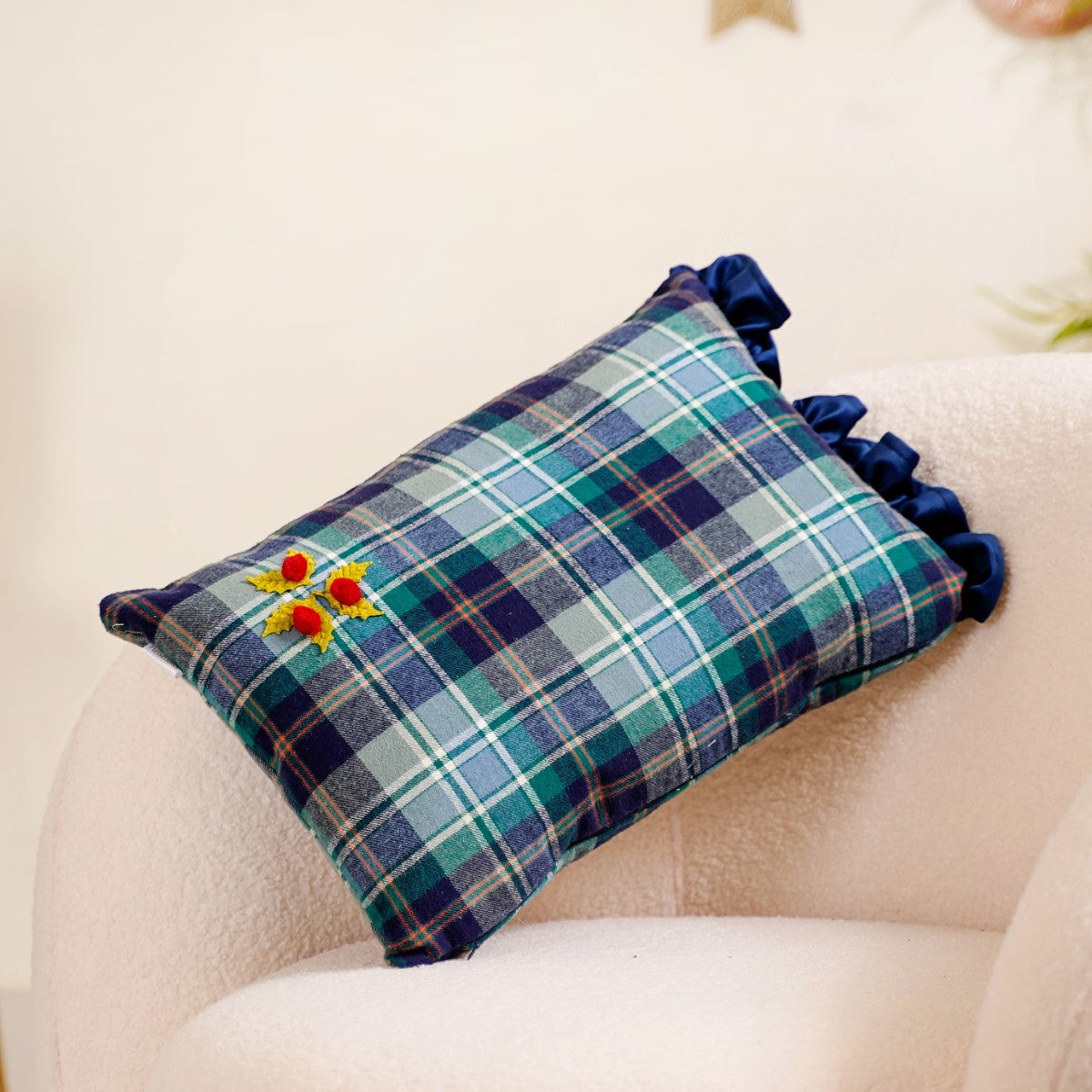 Yes, surprise your loved ones during the holiday season by gifting them this gorgeous blue pillow cover. Its unique plaid pattern and festive red and green pompoms make it a thoughtful and stylish present, adding warmth and charm to their homes.