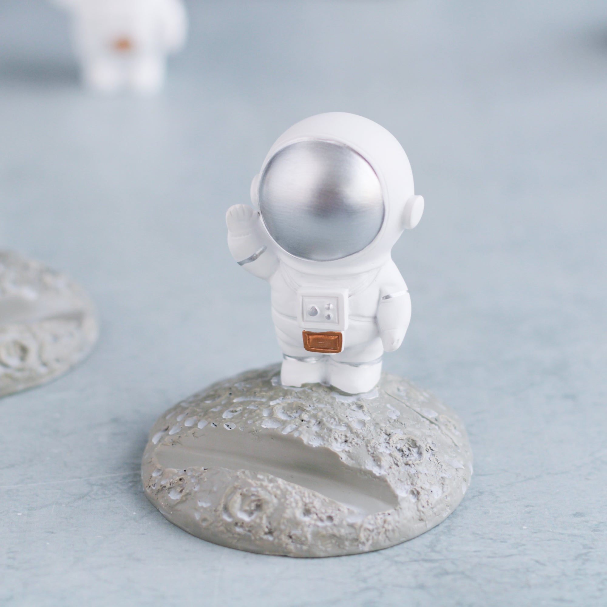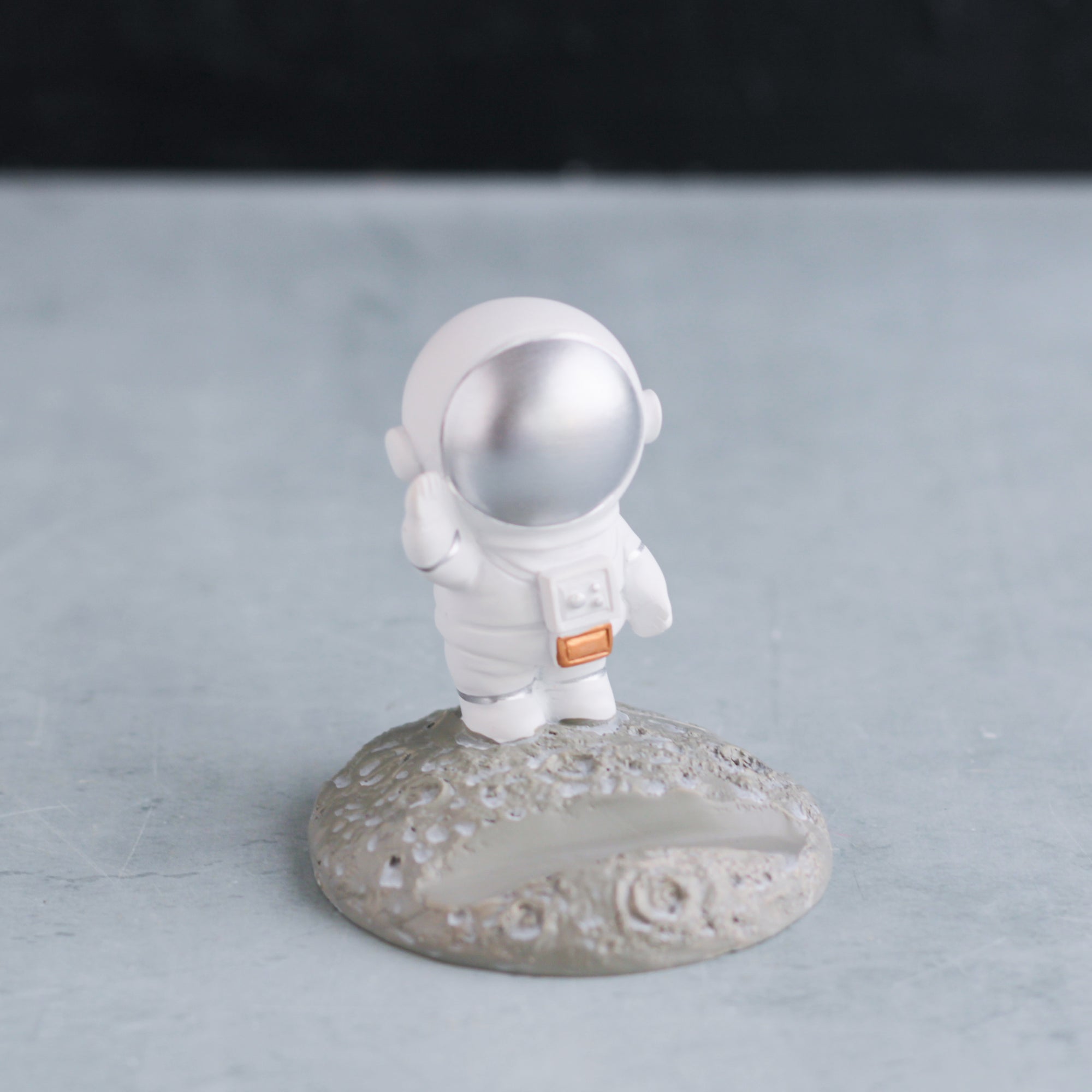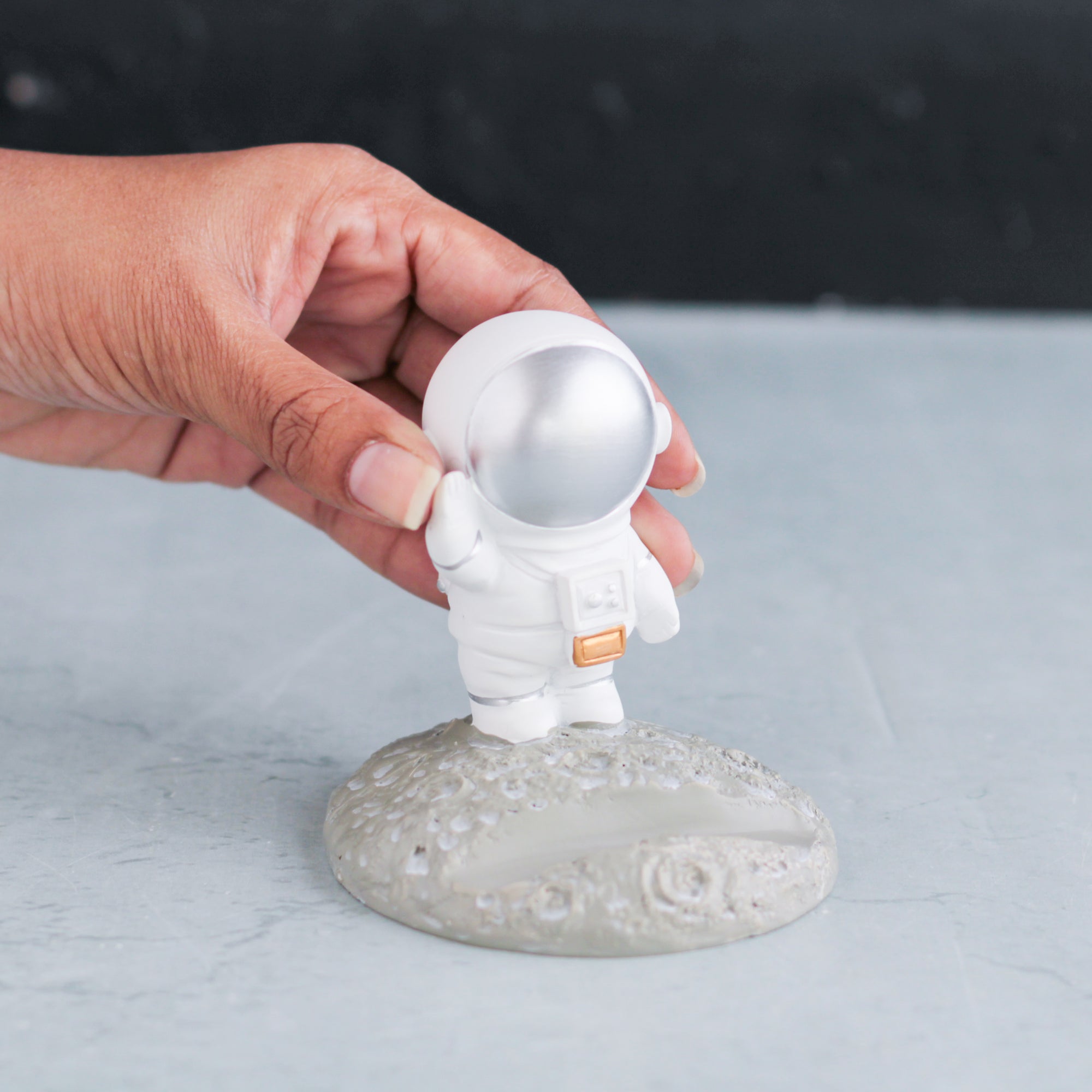 Mobile holder for all smart phones and e-readers. Place the mobile on the astronaut mobile holder and watch the favourite tv shows and movies. One can also go hands free while doing a video call or playing games on the phone. Accessorize the office table, dining table, study table or any counter top with the astronaut showpiece.