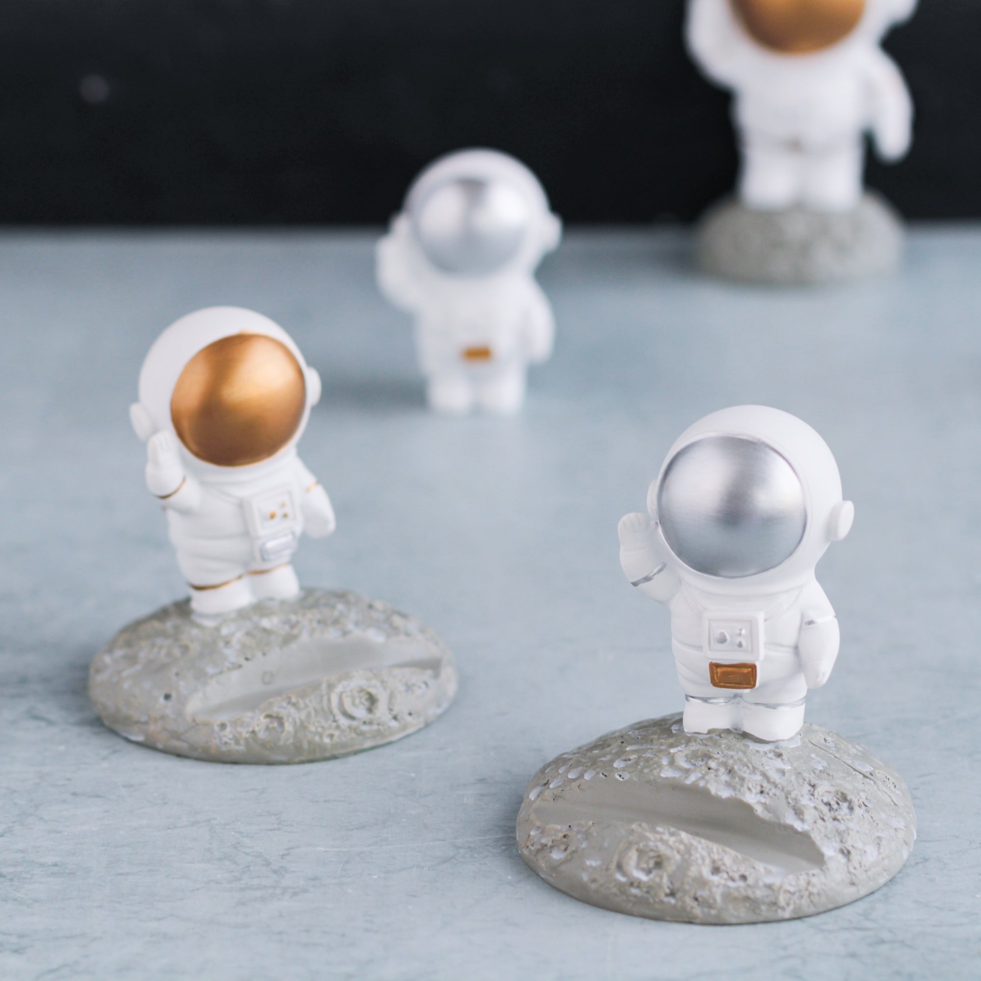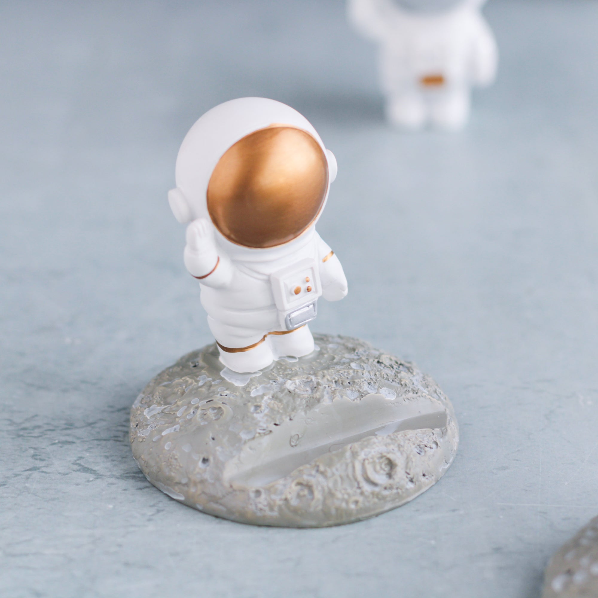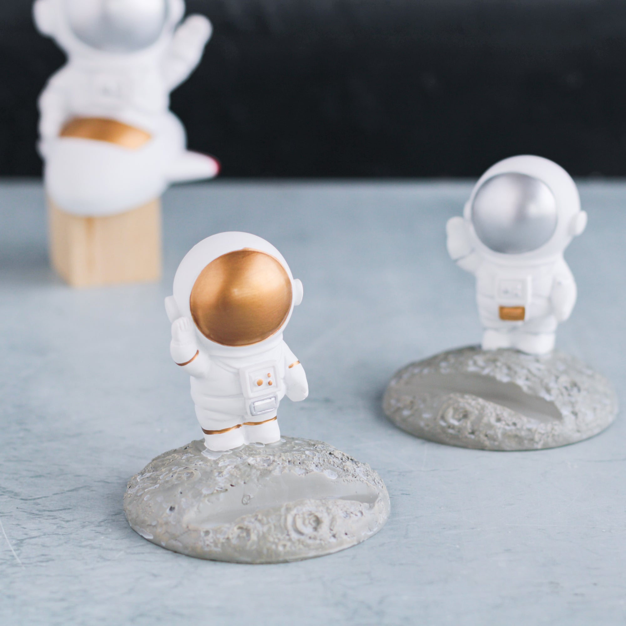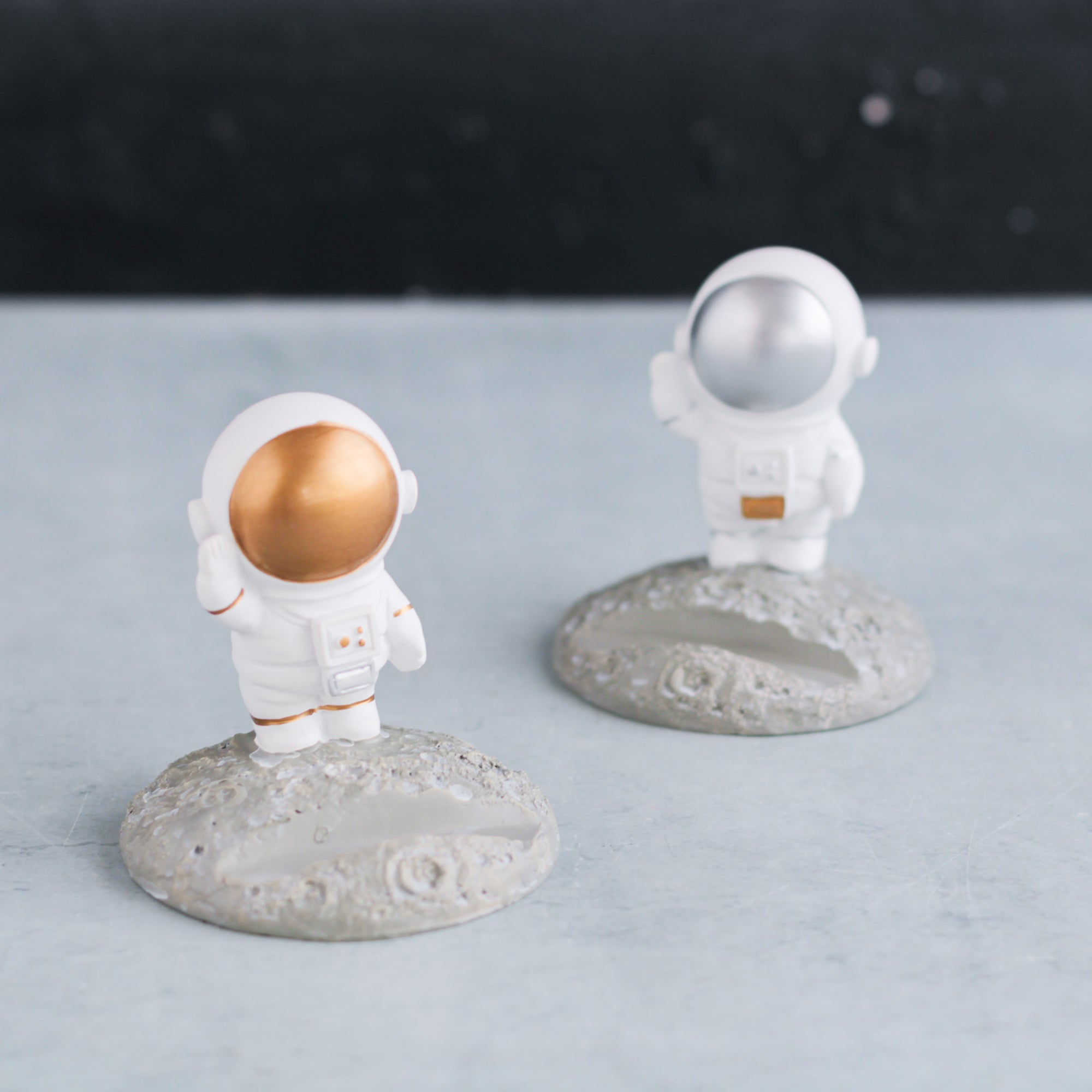 Mobile holder for all smart phones and e-readers. Place the mobile on the astronaut mobile holder and watch the favourite tv shows and movies. One can also go hands free while doing a video call or playing games on the phone. Accessorize the office table, dining table, study table or any counter top with the astronaut showpiece.