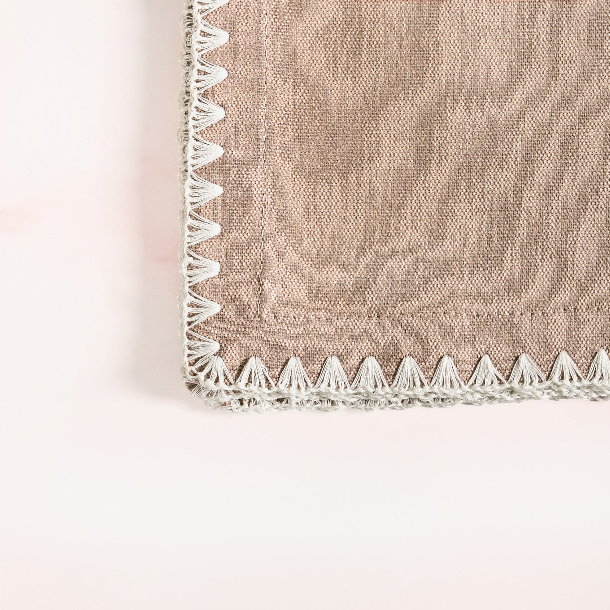 Design: Designed for contemporary homes that cherish subtle elegance, this set of four taupe brown table napkins brings a warm, organic sophistication to any meal. The versatile neutral hue complements both rustic and modern table settings, creating a calming foundation for your dining experience. The design showcases a rich taupe brown hue that serves as a timeless, adaptable neutral shade for any tablescape. Delicate embroidery along the edges introduces subtle texture and visual interest, creating a sophisticated contrast against the earthy background while maintaining an overall aesthetic of understated elegance and refined craftsmanship.
