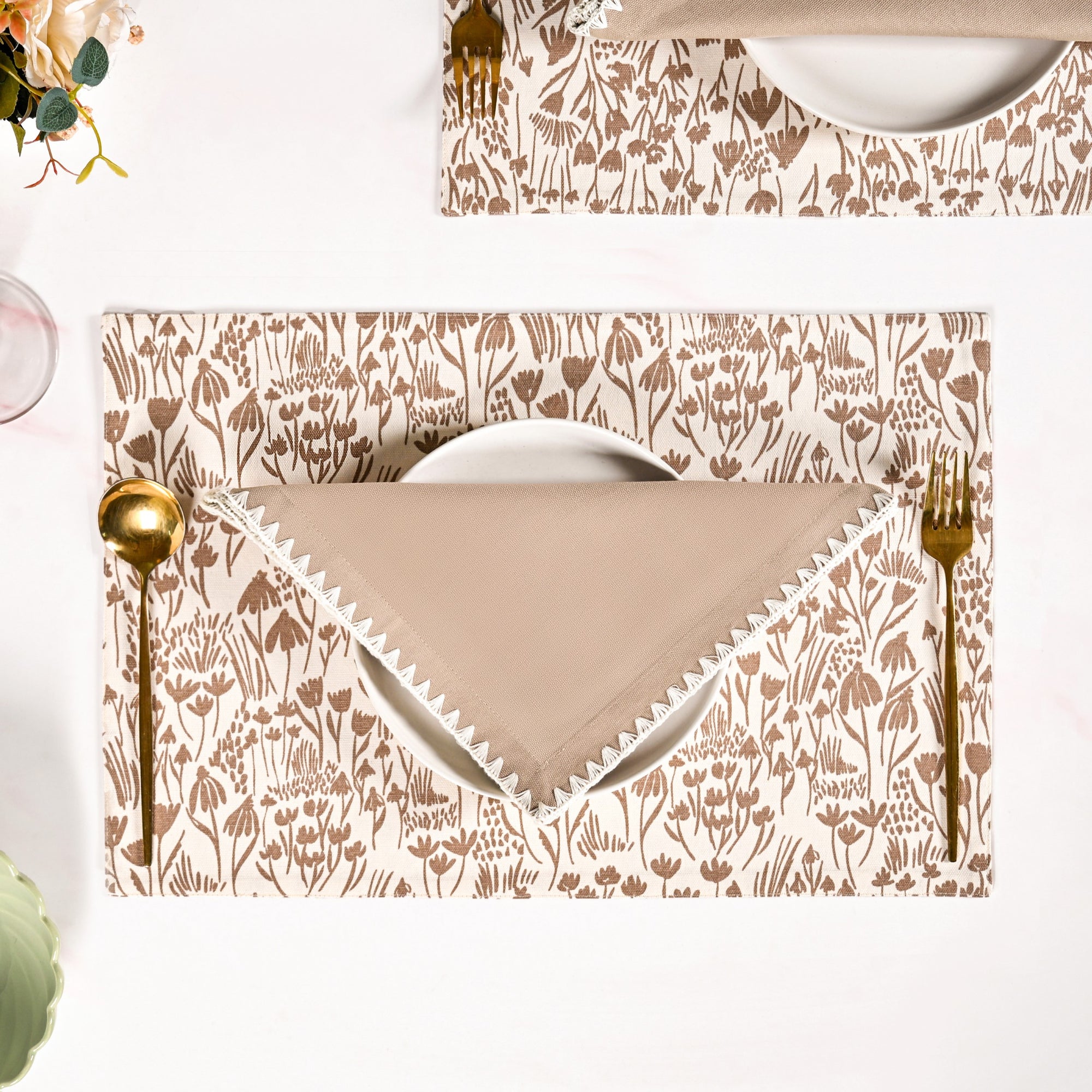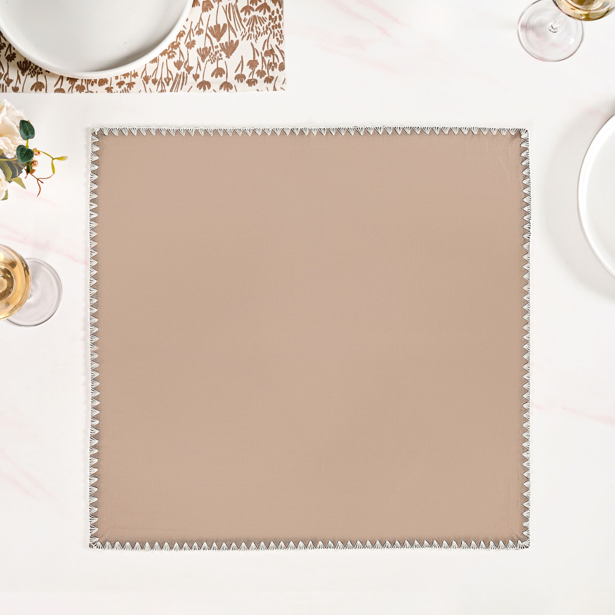 Design: Designed for modern homes that appreciate a blend of neutral tones and handcrafted detail, this set of six brown napkins brings a serene, sophisticated warmth to any meal. The versatile taupe hue serves as a perfect canvas, complementing a wide range of tableware from rustic stoneware to fine china. Each napkin is distinguished by its delicately embroidered border, adding a touch of textural elegance. Generously sized for ample coverage, they are an ideal choice for elevating everyday dining, entertaining guests, or creating a thoughtfully curated tablescape.