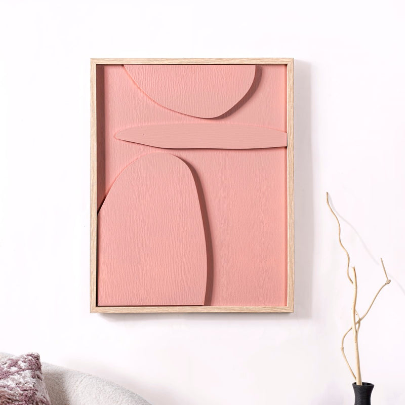 Certainly! The abstract wall decor exudes charm and refinement irrespective of where it is placed. The fluid geometric shapes in this pretty pink shade are perfect for adding grace to any interior, whether as an eye-catching focal point in the living room or for intriguing guests in the foyer.