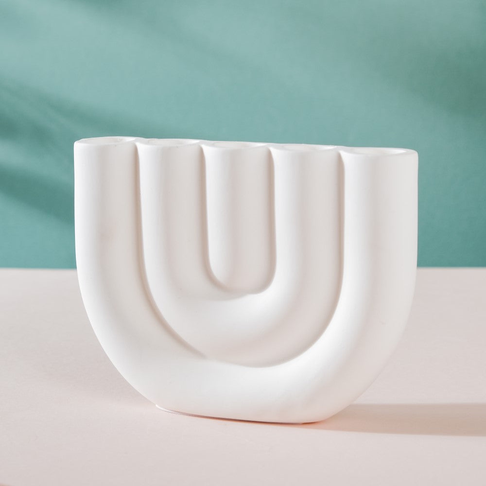 This stylish ceramic candle holder has a distinctively contemporary appeal as a result of its unique form. The minimalistic design of the ceramic candle stand with the candle holder's matte finish and its soothing ivory colour blends beautifully with the yellow candle flames. The candle holder features 5 slots for a decorative candle placement, that can be placed as a centrepiece on the dining table or the mantle top.