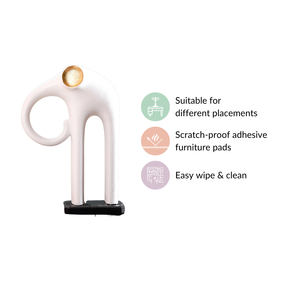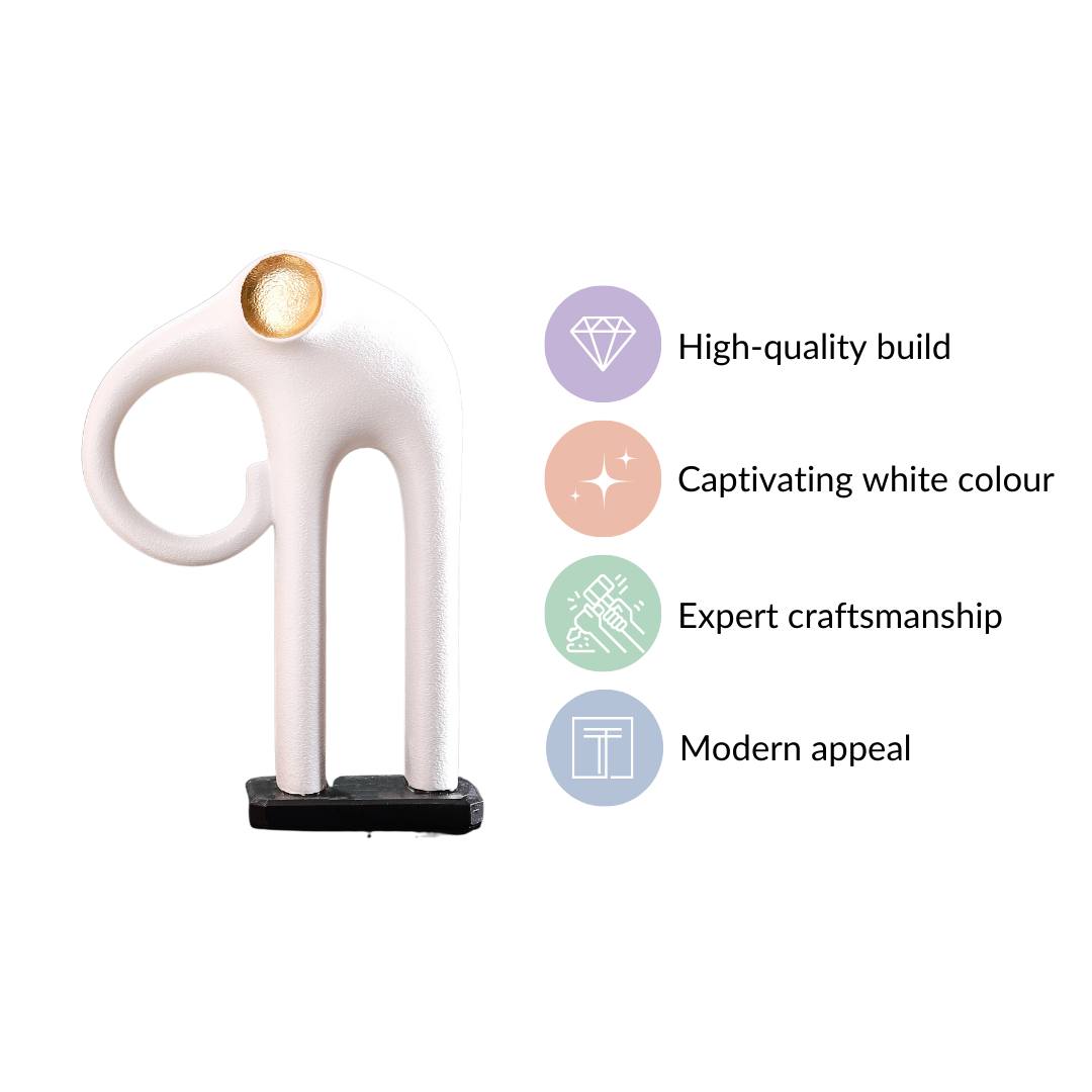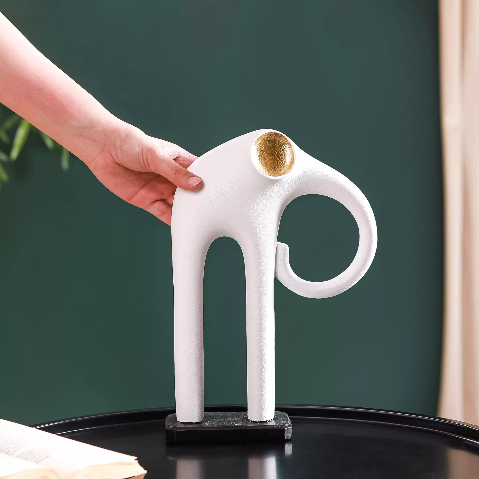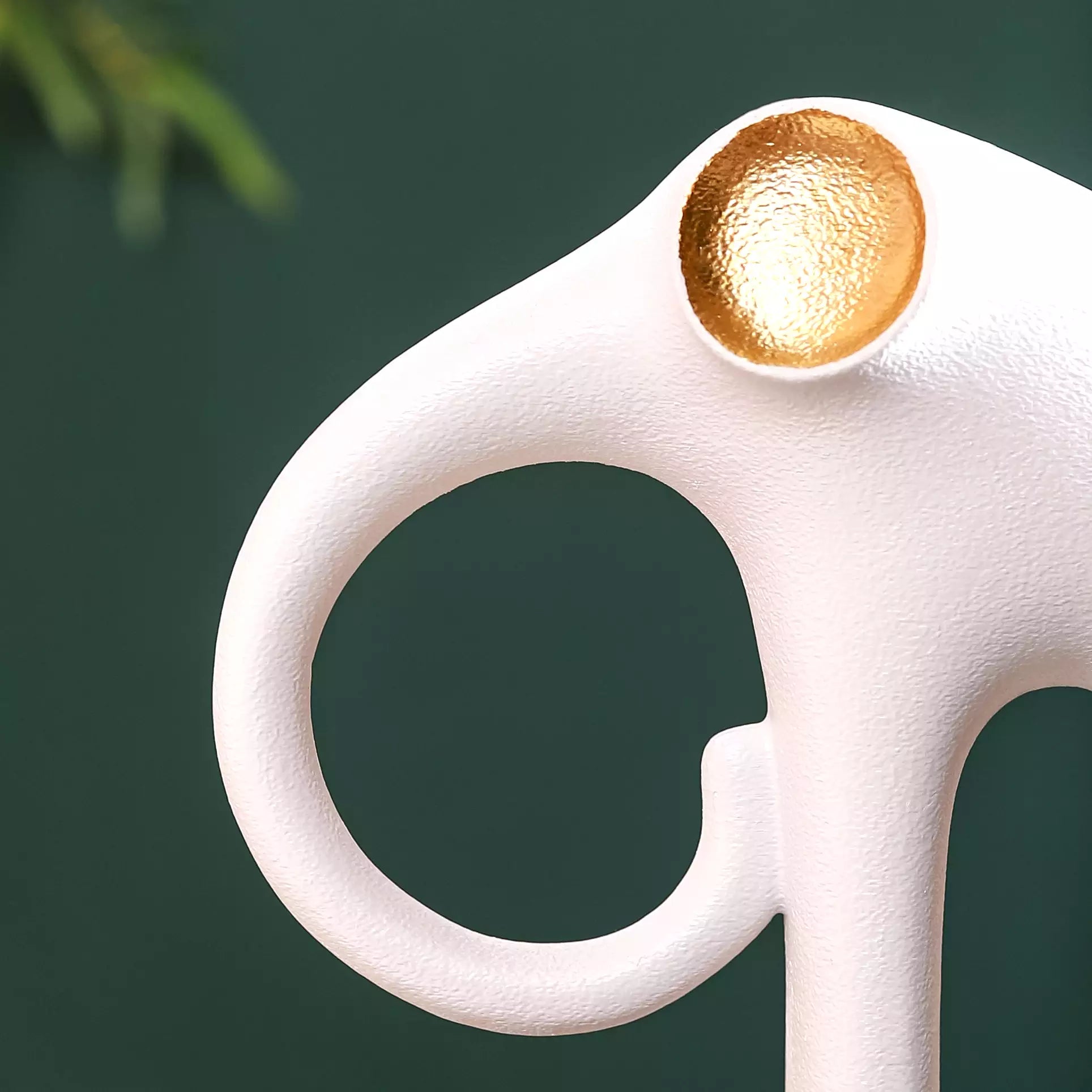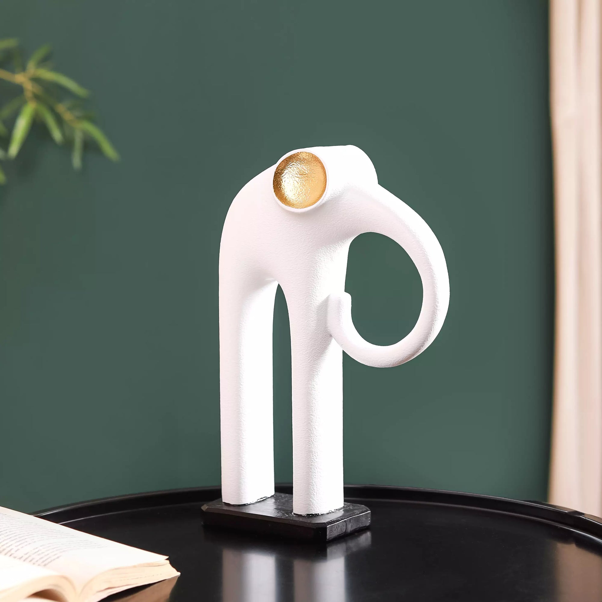 Discover the height of contemporary sophistication with this white elephant decor piece. The white elephant showpiece is an exquisite work of art that features sleek lines that reflect the majestic allure of an elephant. With a charmingly curled trunk, this home decor masterpiece exudes an air of mystique. The pristine white hue symbolizes purity, while opulent golden ears add a touch of luxury.