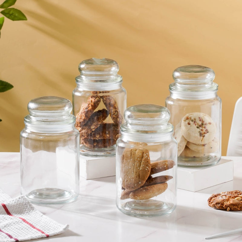 The premium glass jars are well-designed to organise necessities and come in a set of 4. The jars have an airtight lid with a silicon gasket and are made of high-quality glass. The utilitarian storage glass jars make it simple to organise spices and condiments in the kitchen or to set out tabletop seasonings like oregano and chili flakes. Dry fruits, mints, and candies can all be kept in the pickle jars that can be placed on the dining table. Features: - Food-grade glass - Airtight lid with silicon gasket - Multipurpose functionality - Sturdy crack-resistant glass - Reusable - Easy to clean Nestip: Gift the jar set as a utilitarian housewarming present. Size: 10cm D x 17cm H Capacity: 800ml Colour: Transparent Material: Glass Products included: 1 set of 4 jars with lid Style: RHG122G18