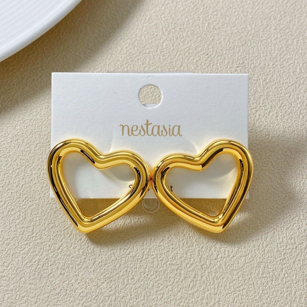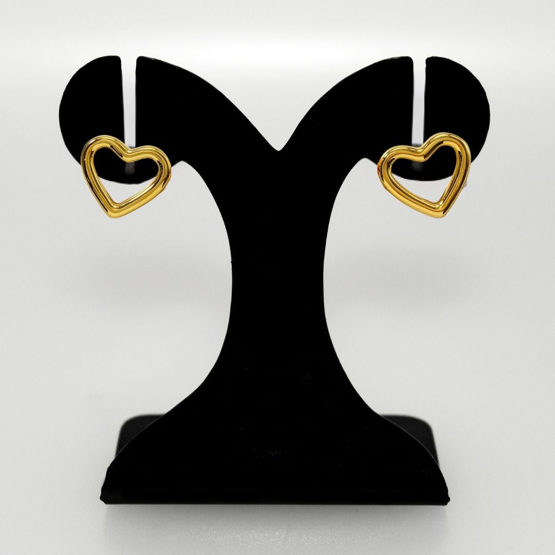 A heart-shaped design in gleaming gold tones brings a modern twist to a timeless symbol of love. These sleek metal stud earrings add just the right amount of elegance and charm to your look, whether for everyday wear or a special occasion. The smooth, polished finish ensures a refined, sophisticated touch. Inspired by the delicate balance of affection and style, the heart design embodies timeless beauty, making these studs a perfect gift or a statement piece for those who love subtle yet striking jewellery.